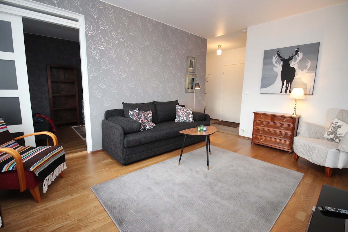 Potpuno opremljen moderan stan za prijatan boravak u Rovaniemi zimskoj zemlji čuda. ❆ 56 m² moderan stan ❆ Svi moderni sadržaji i potpuno opremljena kuhinja ❆ Privatan balkon ❆ Besplatan parking ❆ Odlična lokacija pored centra grada. Kancelarije za safari, restorani u centru grada, kafeterije i prodavnice su udaljeni samo 5 minuta hoda ❆ Autobuska stanica do Santa 's Villagea udaljena je samo 4 minuta hoda ❆ Pored prelepe šetnje uz reku