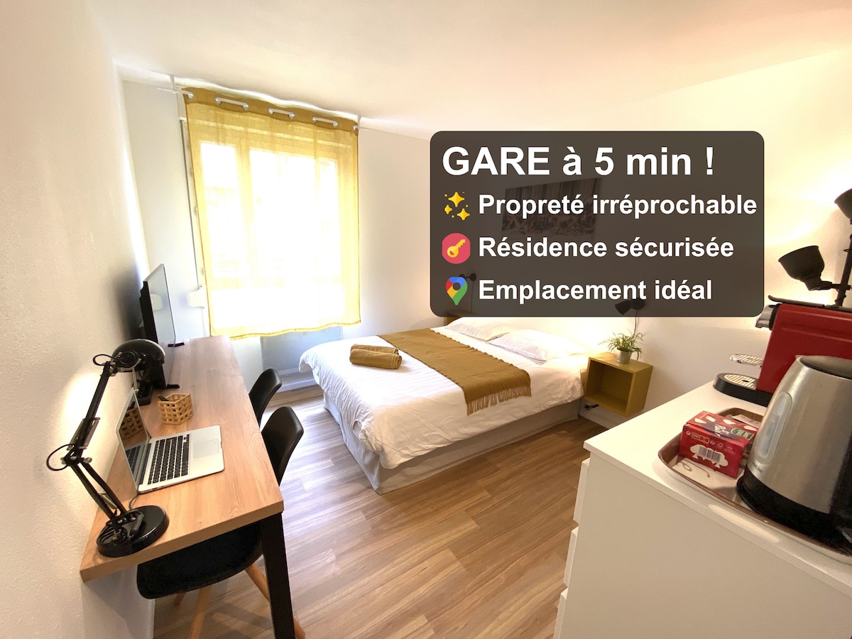 ⭐️ Mirno i odmorite u roku od 5 minuta. Gare SNCF Part-Dieu ⭐️