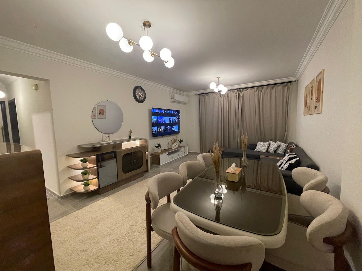 udoban privatni stan koji će ponuditi i zadovoljiti sve vaše potrebe i zahtjeve, svi uslovi za kuvanje, čišćenje, pranje i tuširanje su dostupni. Samo nekoliko minuta do više restorana, kafića, bioskopa, super-hiper pijaca i namirnica. 8 minuta automobilom do „Tržnog centra Arabije”. 35 minuta automobilom do „Velikog egipatskog muzeja” . 39 minuta automobilom do „piramida u Gizi” 45 minuta automobilom do„rijeke Nil”