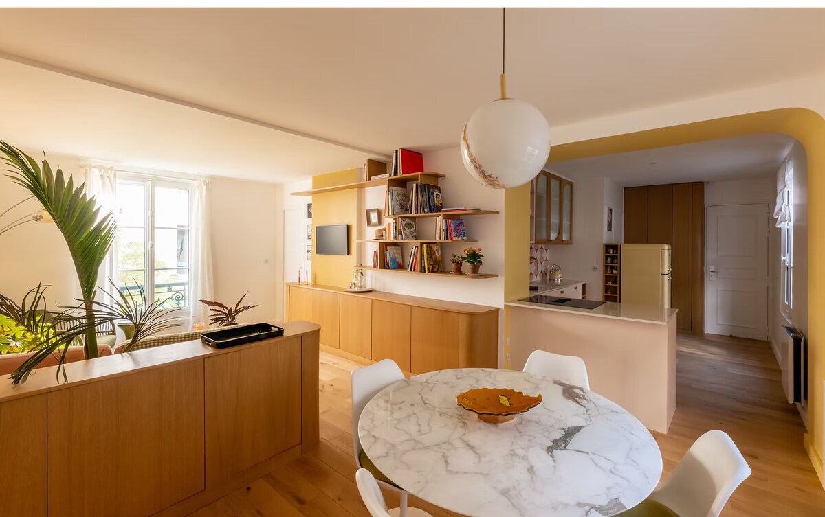 Lep i funkcionalan stan, na najvišem spratu klasifikovane kao istorijske zgrade. Balkon i stan su se okrenuli na jug kako bi uživali na spratu. Nema lifta. Ljetno vrijeme: vazdušni frižideri i releasers u svakoj prostoriji i 3 ventilatora. Mnogi objekti, odlične pekare, ulične pijace su vrlo blizu. Metro (5') i autobusi (2') do centra Pariza. Dovršite dezinfekciju i čišćenje nakon svakog iznajmljivanja