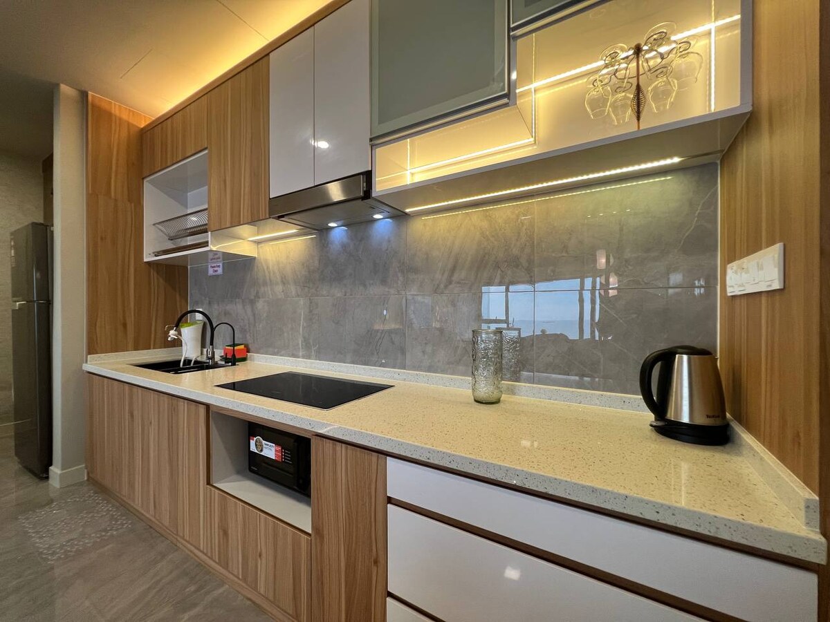 Srce prsluka s nenadmašnim noćnim pogledom na grad Dvije osobe borave u jednoj spavaćoj sobi sa svime što je potrebno i potpuno opremljeno.Uživajte u najboljem pogledu na izlazak sunca tokom dana sa balkona na 23. spratu, uživajte u hladnom i prekrasnom noćnom pogledu na preljevni bazen na 23. spratu U blizini su turističke atrakcije i restorani.Pogodno za poslovne putnike u slobodno vrijeme Prostor Možete sanjati o prirodi i posmatrati predivan izlazak sunca Udobna soba sa dnevnim boravkom Naša jedinica je potpuno namještena i namještena Veliki dnevni boravak i balkon sa noćnim pogledom na grad Sa TV kutijom Klima-uređaj Udobni kauči Sadržaji kao što su 2 u 1 sapun za tijelo + šampon i peškiri. 1 udoban bračni krevet, jastuci i peškiri klima-uređaj Ormar s vješalicama za zavjese za zamračivanje Fen za kosu, pegla i daska za peglanje WC šolja sa kadom i tušem Obezbijeđeni su sadržaji kao što su gel za tuširanje 2 u 1 + šampon Kuhinja Frižider Čajnik, šolje, tanjiri i činije Lonac, viljuška i kašika Mikrotalasna pećnica Dostupno gostima: Objekat na 23. spratu Preljevni bazen (obavezan je kupaći kostim) Radno vrijeme od 7 do 20 sati Imajte na umu da svi objekti zavise od dostupnosti zgrade i SOP-a