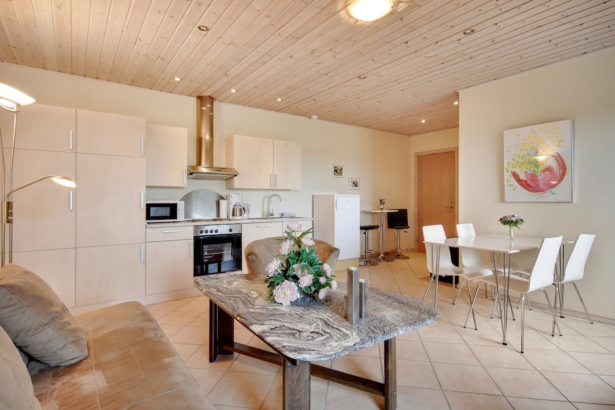 50 m2 STAN samo dve noći Novouređeni i južni stan površine 50 m2 sa dovoljno mesta za 6 gostiju. Dodatni krevet nakon 6 gostiju košta 100 DKR. STAN ima dve spavaće sobe sa bračnim krevetom u jednom i dva kreveta za jednu osobu i velikim krevetom u drugoj. Dodatno naplaćujemo posteljinu, peškire i posteljinu. Dnevna soba i kuhinja su jedna soba sa svim potrebnim priborom za kuvanje jela (+frižider, šporet, mašina za pranje sudova), kauč sa TV-om i trpezarijski sto sa 6 stolica. Kupatilo sa nišom za tuširanje i WC školjkom. Postoji velika i divna spoljna terasa sa baštenskim nameštajem i roštiljem. Vrlo prilagođen osobama s invaliditetom. Ne naplaćujemo naknadu za čišćenje pa vas molimo da stan ostavite u stanju u kojem ste ga zatekli. NAŠ PANSION SA DORUČKOM pruža vam bogatu priliku da se opustite i uživate u ruralnom okruženju, ali imamo i nekoliko zabavnih ponuda za naše goste, na primer dnevnu sobu sa 2 TV-a, čajnu kuhinju, dva frižidera, aparat za kafu, mikrotalasnu rernu i pribor za jelo. I divna terasa sa roštiljem. Besplatan Wi-Fi. Wellness prostor sa saunom, spa i parna brvnara sa masažom. Bez životinja i pušenja unutra. Dolazak nakon 14:00 ili po dogovoru. LOKACIJA, iako je lokacija u zemlji, postoji mnogo mogućnosti da doživite zanimljiva mesta na udaljenosti od vožnje. Mnogi gosti borave kod nas jer se nalazi u blizini: - nemačka granica - Dvorac Møgeltønder u kojem živi danski princ sa svojom porodicom - Danfoss Universe - tereni za golf - Muzej Bov - jedrenje u fjordu Flensborg - biciklističke rute - Sommerland South itd.