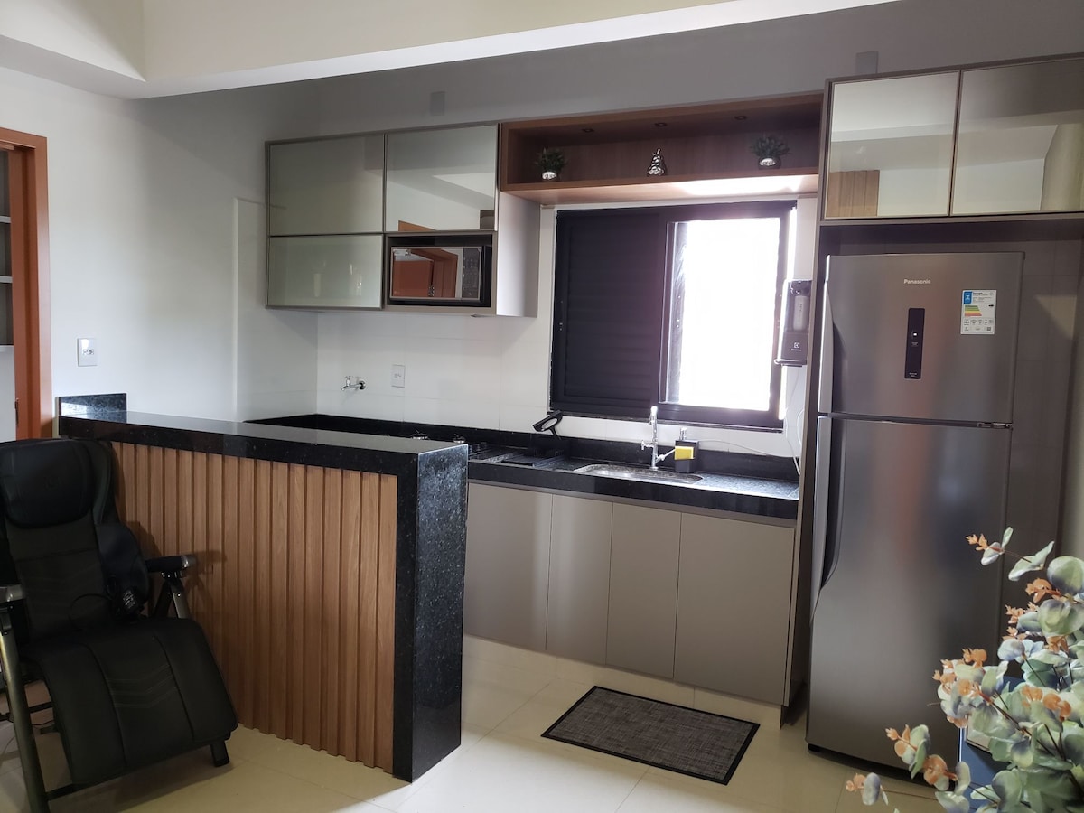 Naš apartman vam nudi smart TV, Wi-Fi, klima-uređaj, električni aparat za kafu, frižider, aparat za sendviče, šporet, osnovni kuhinjski pribor i dva kreveta za jednu osobu sa NASA jastucima. D33 dušek. Condomínio ima rotirajući parking, lift, stalak za bicikle i odličan zajednički prostor sa: roštiljem, bilijar stolom, klupom za coworking i vešom sa mašinom za sušenje veša. Nema navlake za raskrsnicu kreveta.