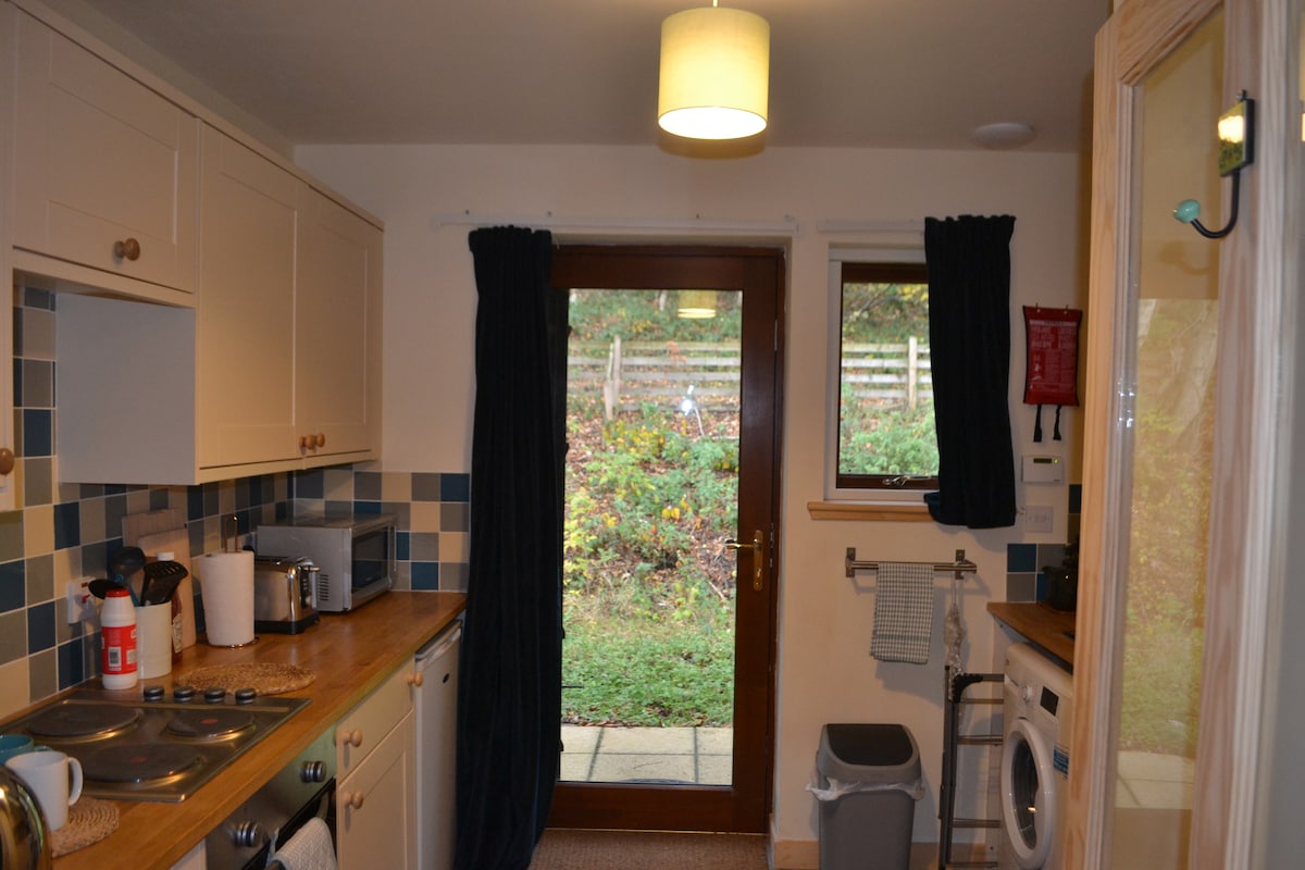 Topla, udobna kuća na privatnoj šumskoj lokaciji. 2 hektara vrta za uživanje. Dnevna soba, trpezarija, 3 spavaće sobe , 2 kupatila, garderoba sa WC-om. Nema KUHINJE. Veliki terenski parking sa širokim dvostrukim pristupom, automobil je neophodan za uživanje u ovom zadivljujućem prostoru. NOVO za ljetnjikovac na otvorenom Kuhinja/Trpezarija/ Muzika /Aga Grijani prostor za veće grupe i duže boravke koji žele da se snabdevaju sami. Ovo je neobavezno dodatnih 20 £ po noćenju ako je potrebno, može se rezervisati i plaća se domaćinu po dolasku