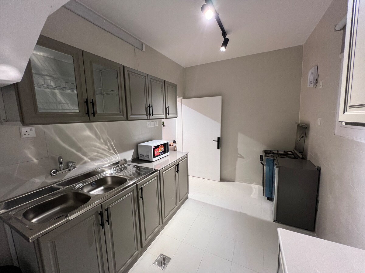 Odsjednite u luksuznoj rezidenciji u blizini svega što želite da posjetite. Sadržaji: • Park i pješačka staza Al-Mansak (1 minut hoda) • Džamija (1 minut hoda) • Komercijalna ulica (1 minut hoda) Karakteristike apartmana: • Dvorište (terasa + roštilj na ugalj) • Dnevni boravak (prostor za sjedenje + TV + trpezarijski sto) • Spavaća soba s bračnim krevetom i privatnim kupatilom • Kuhinja (aparat za kafu + frižider + električna i plinska rerna + roštilj + automatska mašina za pranje i sušenje veša) • Gostinjska soba sa 4 kreveta i privatnim kupatilom
