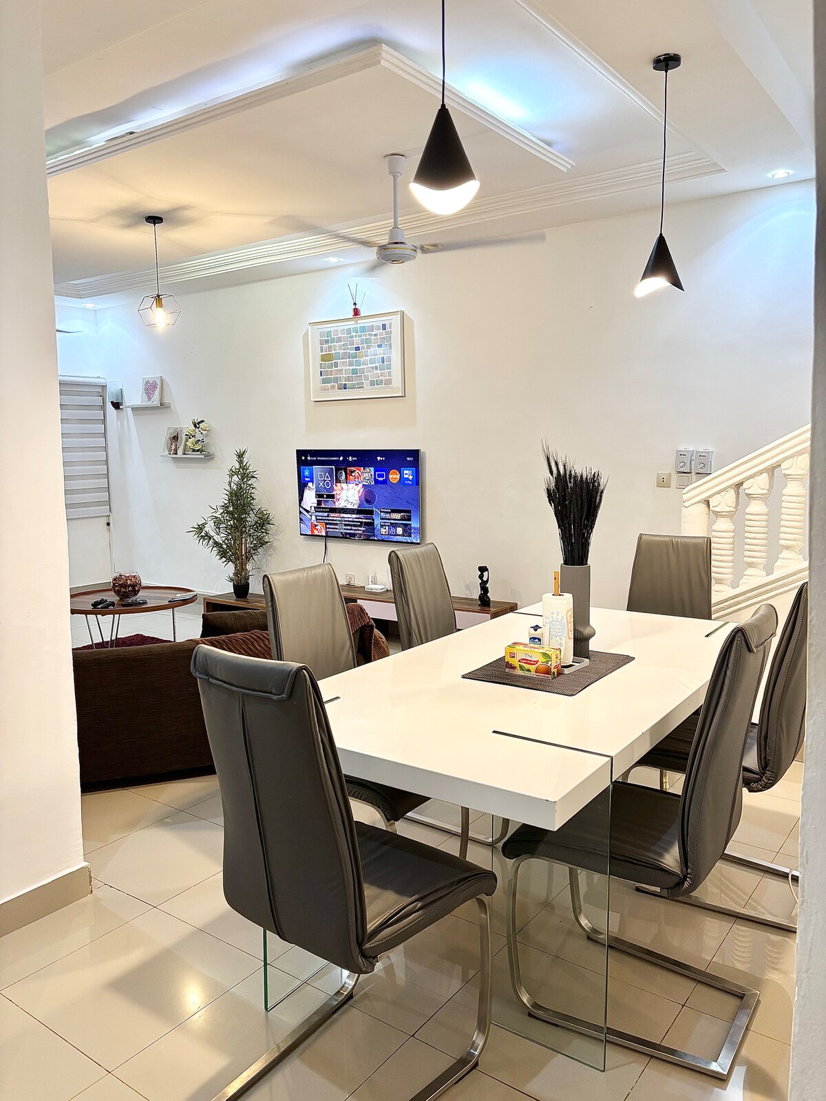 Smeštena u novom naselju Bethel Estate of GCITT Calavi, nasuprot 20.000 novih socijalnih stambenih jedinica u naselju Ouedo Estate (u izgradnji), ova vila se nalazi u blizini turističkog jezera Ganvié i zoološkog vrta Agoualand Ovaj potpuno privatni smeštaj je idealan za porodične odmore, grupne boravke ili izlete sa prijateljima. Sadržaji Bazen, đakuzi, klima-uređaj, plafonski ventilatori, Wi-Fi, TV kanali, spoljne bezbednosne kamere Napomena: Troškove doplate za struju snose gosti.
