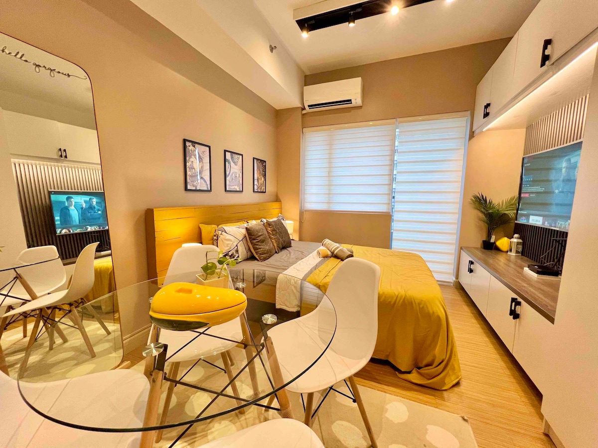 Rezervišite ovaj luksuzni smeštaj u centru BGC-a. Sve je udaljeno samo nekoliko koraka. Vrhunske kancelarije i vrhunski tržni centri okružuju Uptown Parksuites. Doživite kosmopolitski odmor u tržnom centru Uptown. Istražite jedinstvene koncepte hrane i kupovine. Zabavite se tokom noći u vrhunskim barovima na pragu. Opustite se u našoj modernoj spavaćoj sobi iz sredine veka. Opustite se u bračnom krevetu i dodatnom kauču. Udobnost uključuje 55-inčni SMART TV, internet od 400 MBPS, prostor za učenje i privatni balkon.