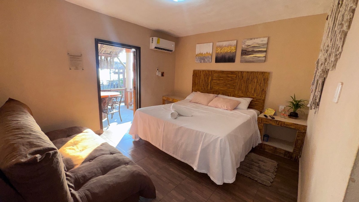 Dobro došli u vilu Arena! Ova porodična soba nudi udobnost i spokoj sa dva bračna kreveta, klima-uređajem i internetom. Pristup bazenu i chapoteadero. Opustite se na privatnoj terasi sa visećom ležaljkom. Privatno kupatilo sa toplom vodom. Uživajte u bazenu i restoranu. Mi primamo kućne ljubimce! Uronite u prirodne ljepote Barra de Coyuca sa zlatnim pješčanim plažama, kristalno čistim morem i aktivnostima na vodi. Rezervišite sada i doživite doživljaj doma!