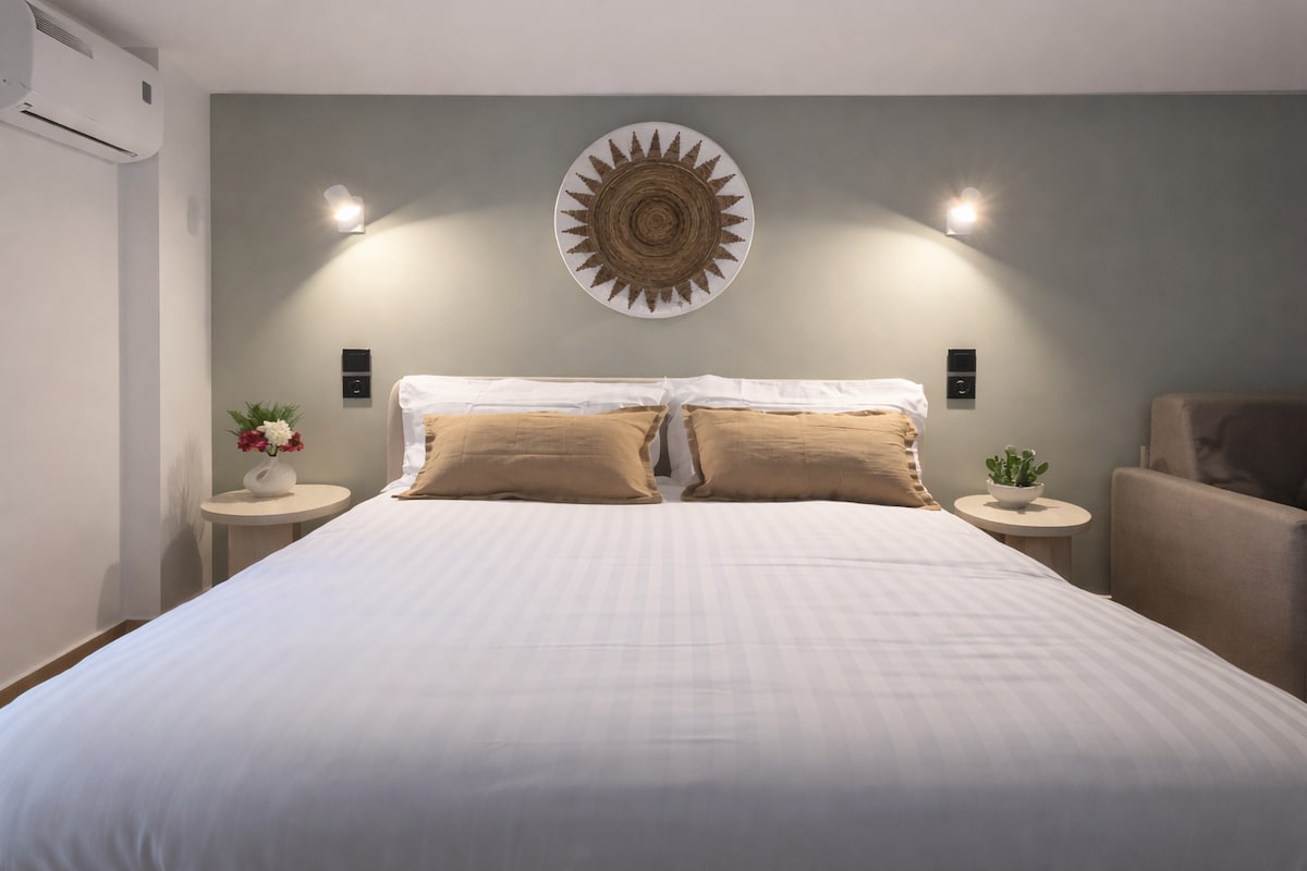 Please read “Other Things to Note” before booking ⬇️ If availability here is limited, check our sister property “Maisonette.” After 7 years of hosting—and as a traveler myself—I believe in real, soulful hospitality. No AI, no lockers, no cold apps. Expect a warm welcome, high-standard cleaning, and support anytime you need. Our peaceful, rustic homes are steps from the sea, with a dreamy garden full of plants, peacocks, friendly cats and dogs, and a tranquil pond. 🌅🏖🌊🦚