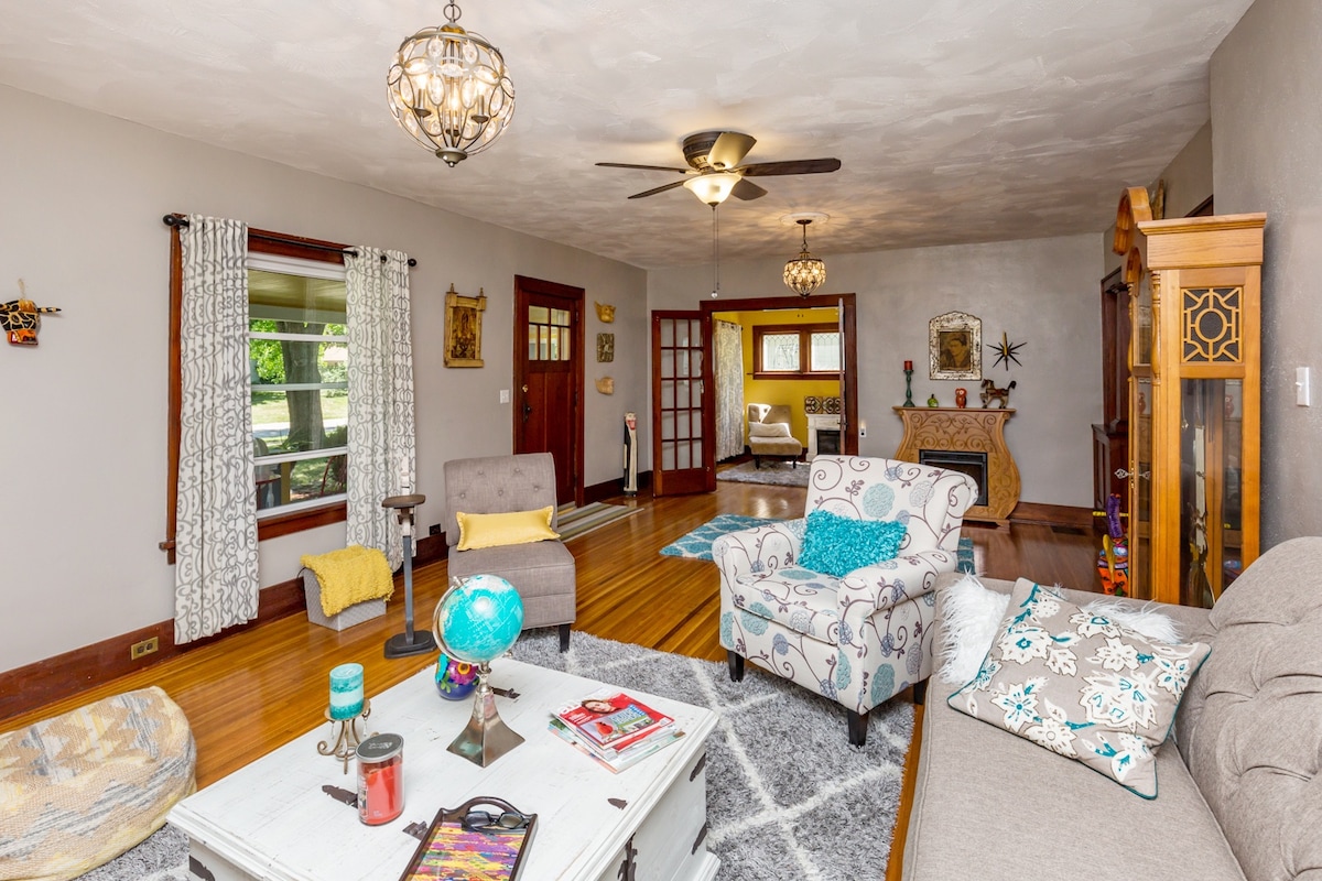 This 1910 PET FRIENDLY bungalow is full of charm and unique art. Just a couple of blocks to the town square for restaurants and shopping. In the summer you will enjoy the quaint front porch and backyard patio full of colorful flowers nice for outdoor dining. The fenced backyard is perfect for bringing your dog. Small dogs 25 pounds and under require a one time $50 pet fee and dogs larger than that are up for discussion. Close to Buxton Park for scenic walks.