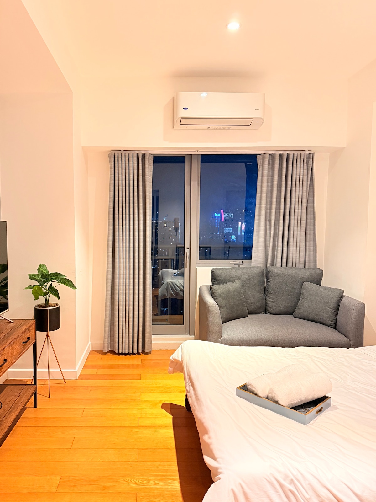 Need a quick escape? This cozy city stay hits different. Enjoy breathtaking sunsets from your front-row seat, plus stunning city lights at night 🌇✨ A warm, homey space in the heart of the city — perfect for date nights, celebrations, or a quick reset. What You’ll Love: 🌅Stunning city and sunset views from the unit 🍃Clean, modern interior with comfy bed & sofa 📶Smart TV & fast Wi-Fi 🫧Essentials provided: towels, toiletries, and linens 🍳Mini kitchen for light cooking or heating up food
