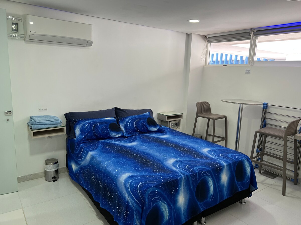 Iznajmite udoban studio apartman na plaži sa odličnim pogledom na more, koji se nalazi u južnom stambenom sektoru Rodadero, u blizini tržnog centra, supermarketa, restorana, između ostalog. Kapacitet za 3 osobe. Zgrada ima bazene, đakuzi, saunu, teniski teren, lift, parking i direktan pristup plaži iz stambenog kompleksa. (Pristup je stepenicama.)