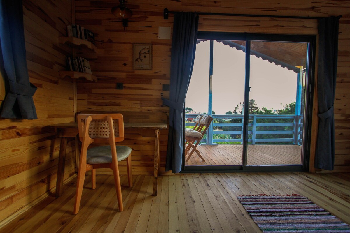 Udobna dvospratna drvena kuća na likijskom putu u mirnom primorskom selu Karaöz. Na spratu se nalazi spavaća soba sa bračnim krevetom, privatno kupatilo i balkon sa pogledom na more. U prizemlju se nalazi kuhinja otvorenog tipa, dnevni boravak sa sofom na razvlačenje i drugo kupatilo. Bašta ima prirodno tlo i prostor za parkiranje. Okružen prirodom i blizu mora, savršen je za parove ili male porodice koje traže mir i opuštanje.