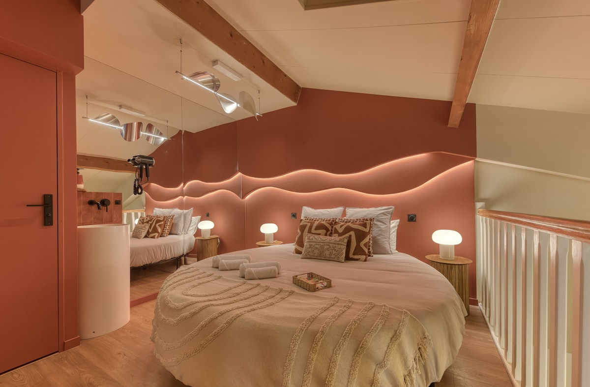 ❤️🔥 Otkrijte luksuzni Love Room s BARŠUNOM i KOŽOM na 20 minuta od Pariza, savršene za romantičan i seksi odmor ! 💎 Spa kupatilo, privatna sauna, bračni krevet sa oblačnim efektom, bar za skidanje, tantra kauč itd. 💋 Istražite nove senzacije i zajedno stvorite nezaboravne uspomene u nevjerovatno opremljenom tajnom prostoru u igraonici BDSM 🎬 92" Cinema face to the bed with Netflix, Prime Vidéo, Disney+, Spotify 💫 Pobjegnite u utočište mira i luksuza za jedinstveno i nezaboravno iskustvo !