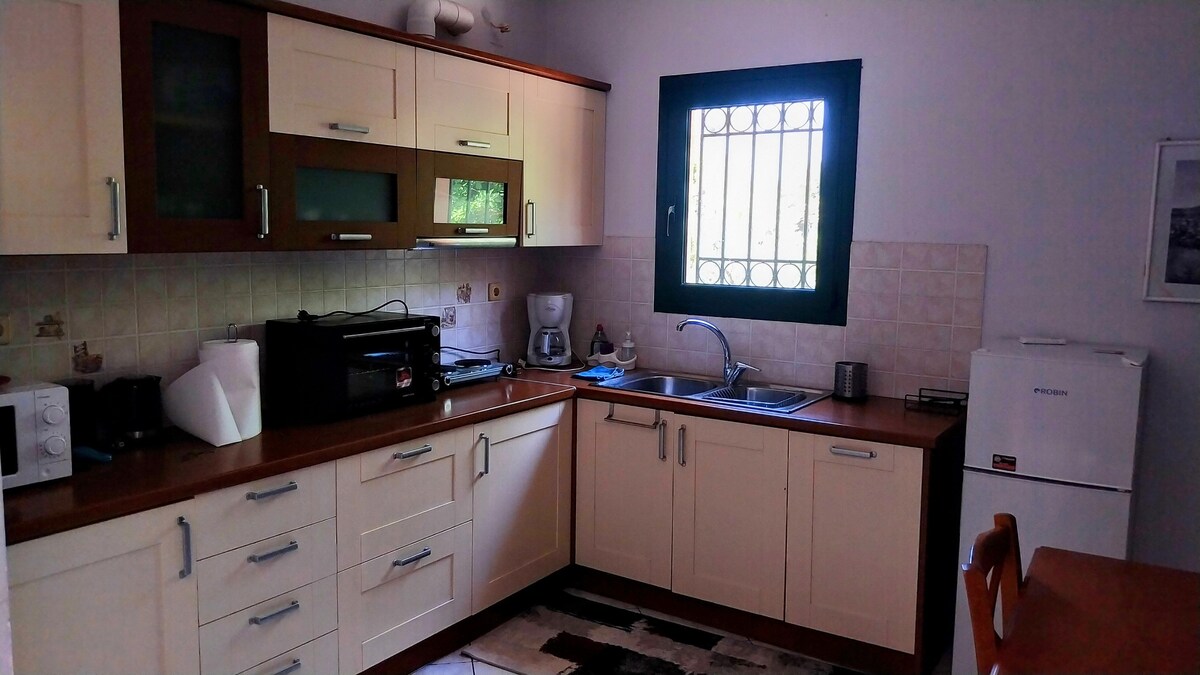 Ολοκαίνουριο πανέμορφο σπίτι με όλες τις ανέσεις. Πλήρως εξοπλισμένο με πάρκινγκ μπροστά από το σπίτι. Το διαμέρισμα βρίσκεται μόλις πέντε λεπτά με το αυτοκίνητο από το κέντρο. Επίσης βρίσκεται πολύ κοντά στο Δημοτικό Στάδιο Χαλκίδας και το ΚΤΕΛ. Σε πολύ κοντινή απόσταση βρίσκονται υποκαταστήματα τραπεζών, ψησταριές, καφετέριες και super markets. Το σπίτι βρίσκεται πολύ κοντά στις παραλίες Συκιές, Παπαθανασίου και Κουρέντι. Ιδανικό για μία άνετη και ευχάριστη διαμονή. Σας περιμένουμε με χαρά.