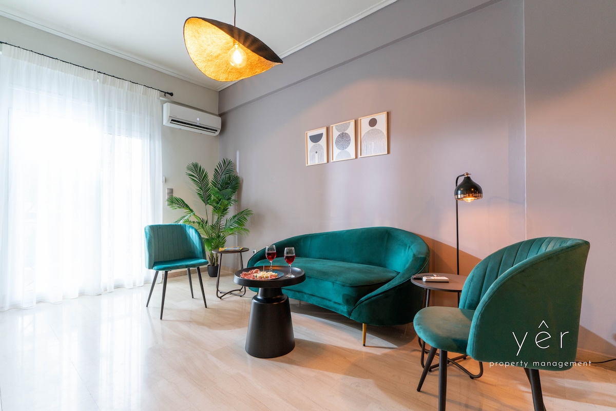 Ovaj jedinstveni, luksuzni stan, nedavno renoviran (2016. godine), prostran (110m2) i u samom centru Atine (oblast Koukaki) nalazi se tačno preko puta stanice metroa i Muzeja Akropolja. Ima neverovatan pogled na spomenik Akropolj i idealna je za zaista opuštajući, prijatan i udoban boravak.