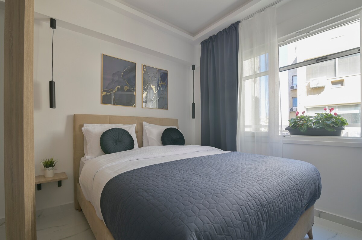 Jedinstven 1 spavaća soba, potpuno opremljen stan na sedmom spratu renovirane zgrade iz 2020. godine sa balkonom koji oduzima dah. Brzi internet, vrhunski sadržaji, luksuzan bračni krevet (širine 150-179 cm) i vaš sopstveni Netflix nalog su samo neke od stvari koje vam nudimo. Svetao, prostran, sa svime što vam je potrebno da biste uživali u boravku u srcu društvenog života Soluna, samo 5 minuta od Aristotelovog trga i 2 minuta od obale. Dobro došli i uživajte u boravku!