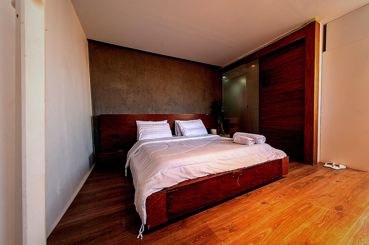 Uživajte u ovom elegantnom smeštaju sa jednom spavaćom sobom/jednim kupatilom koji se nalazi u najboljem delu Zamaleka (južni Zamalek), na samo nekoliko koraka od sportskog kluba Gezira. Idealna je za parove ili samce. Možete da kupite dnevnu kartu (oko 10 $) i uživate u teretani i bazenu u Geziri, na dva minuta hoda od kuće. P.S. Nisu dozvoljeni posetioci. Samo registrovani gosti mogu da uđu u zgradu.