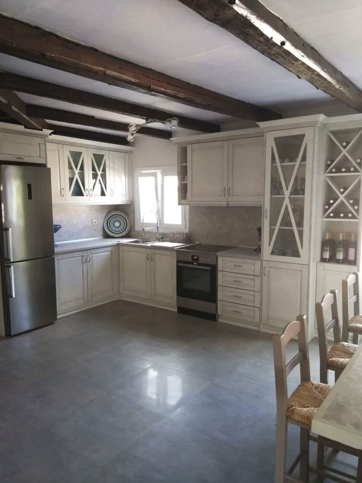 Naš divni dom se nalazi u selu Kastraki, 290 metara od glavnog trga sela. U kući može da boravi najviše 6 osoba. Može da primi porodicu ili malu grupu prijatelja. Ima dvije spavaće sobe, dva kupatila, potpuno opremljenu kuhinju i dnevni boravak (sastoji se od dva kauča koji se mogu pretvoriti u krevete). Ispred kuće se nalazi otvoreni zajednički prostor u kojem gosti mogu besplatno da parkiraju svoje automobile (privatni posjed). Gosti imaju pristup mašini za pranje veša.