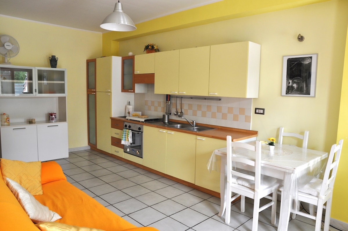 Svetao i raznobojan stan se nalazi u prizemlju malog stambenog kompleksa sa zasebnim ulazom, ima veliku popločanu baštu i malu zelenu površinu. Smeštaj ima 2 spavaće sobe (1 bračni krevet i 1 krevet za jednu osobu), dnevni boravak sa kaučem na razvlačenje, TV, veliku kuhinju, kupatilo sa tušem, bide, fen za kosu i mašinu za veš. Idealno za kombinovanje mora i kulture sa predivnim obližnjim Paestumom.