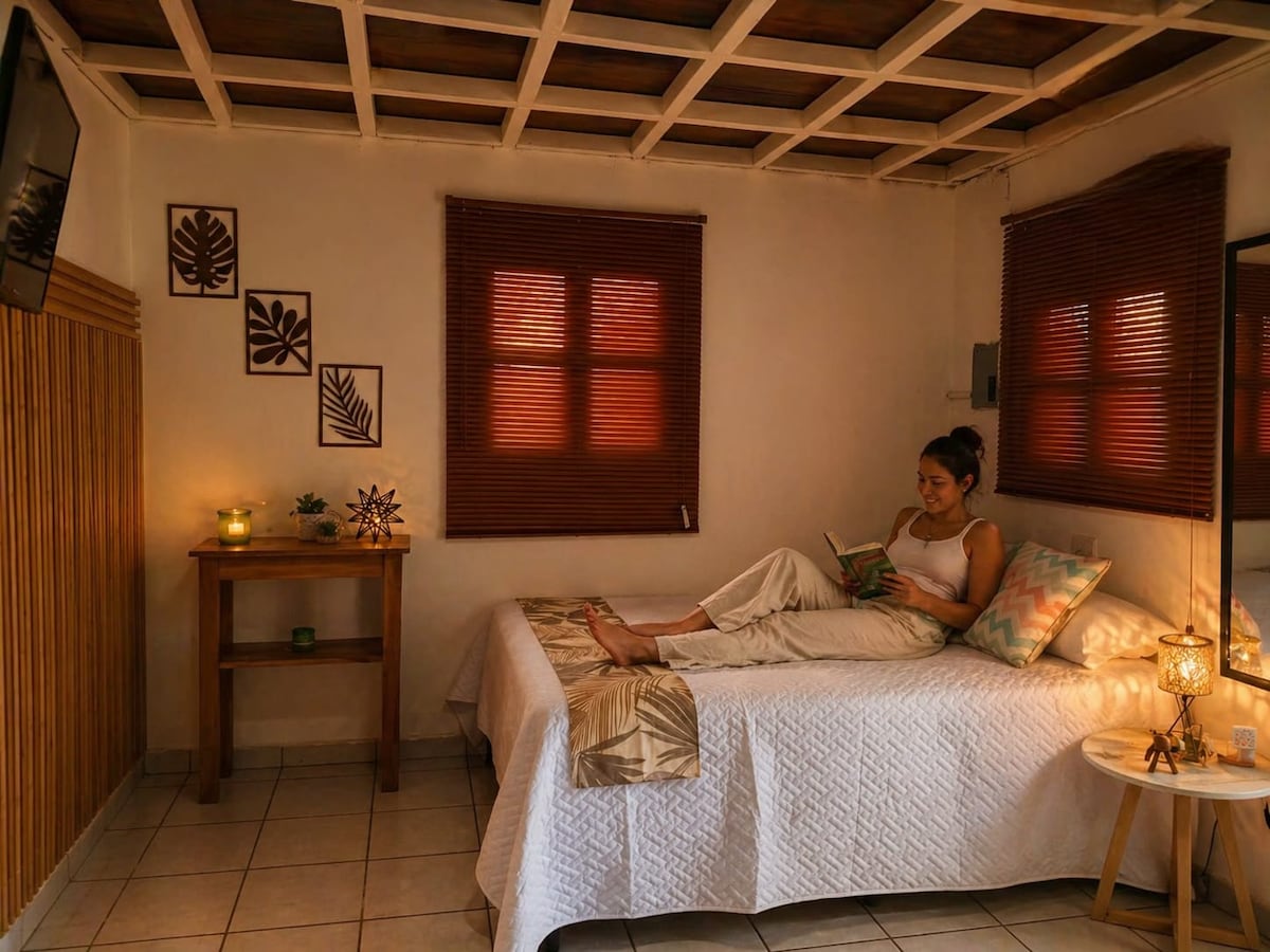 Haciendas del mediterráneo, Clúster 1. A 1 minuto del supermercado, panadería, farmacia, pizzería, pollo frito. El lugar cuenta con ducha de agua caliente. El alojamiento se encuentra en área privada por lo que se requerirá que proporciones documento de identificación y nombres completos de las personas que se hospedarán. Piscina a tan solo 50 metros de distancia, disponible de Martes a Domingo de 9 am a 9 pm. NOTA: reserva realizada el mismo día después de las 4.30 p.m., acceso máximo 9:00 p.m.