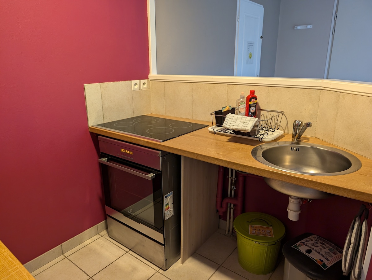 GANNAT, u maloj zgradi pored železničke stanice i u blizini svih prodavnica, na 1. spratu, stan tipa F1 bis atipično od 40 m2, upravo završeno renoviranje, koja se sastoji od 2 sobe: spavaće sobe (bračni krevet i garderoba), poluotvorenog dnevnog boravka opremljenog kaučem na razvlačenje, HD TV-a 127 cm, opremljene i opremljene kuhinje (frižider, napa, rerna, mikrotalasna ploča, ploča za kuvanje), kupatila sa tušem i WC-om - veoma brzim Wi-Fi internetom (vlakna) - sigurnim ulazom - Besplatan parking na ulici.