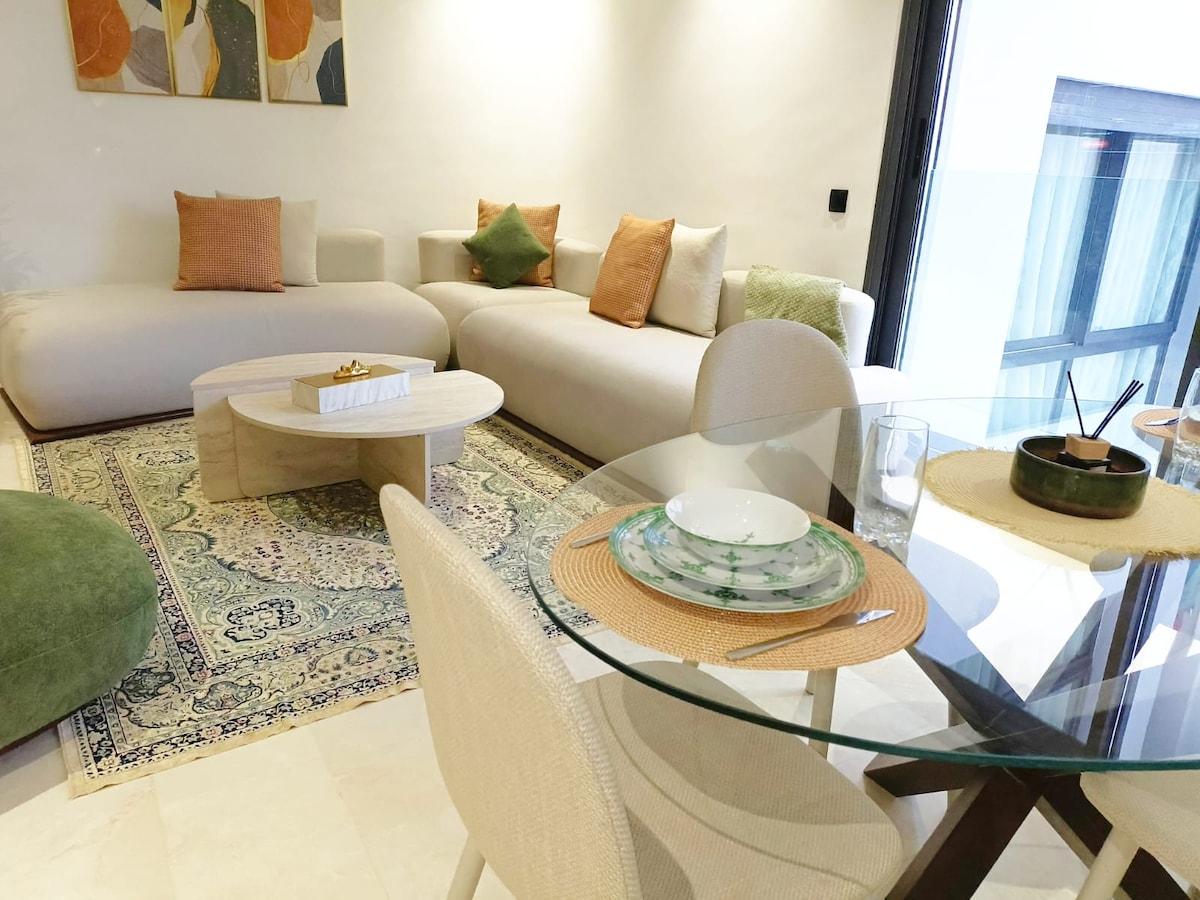 Perla 403💎, utočište mira u kojem se elegancija moderne rezidencije stapa sa udobnošću hotela sa 5* u srcu Kazablanke! Opustite se u prostranom dnevnom boravku modernog dizajna, opremljenom pametnim TV-om od55inča sa Netflix-om i IPTV-om za apsolutne večeri opuštanja. Soba, pravo udobno gnijezdo, obećava mirne i okrepljujuće noći ☁️ Sa svog privatnog balkona posmatrajte veličanstvene zalaske sunca grada, čineći svaki trenutak vašeg boravka nezaboravnim! ✨