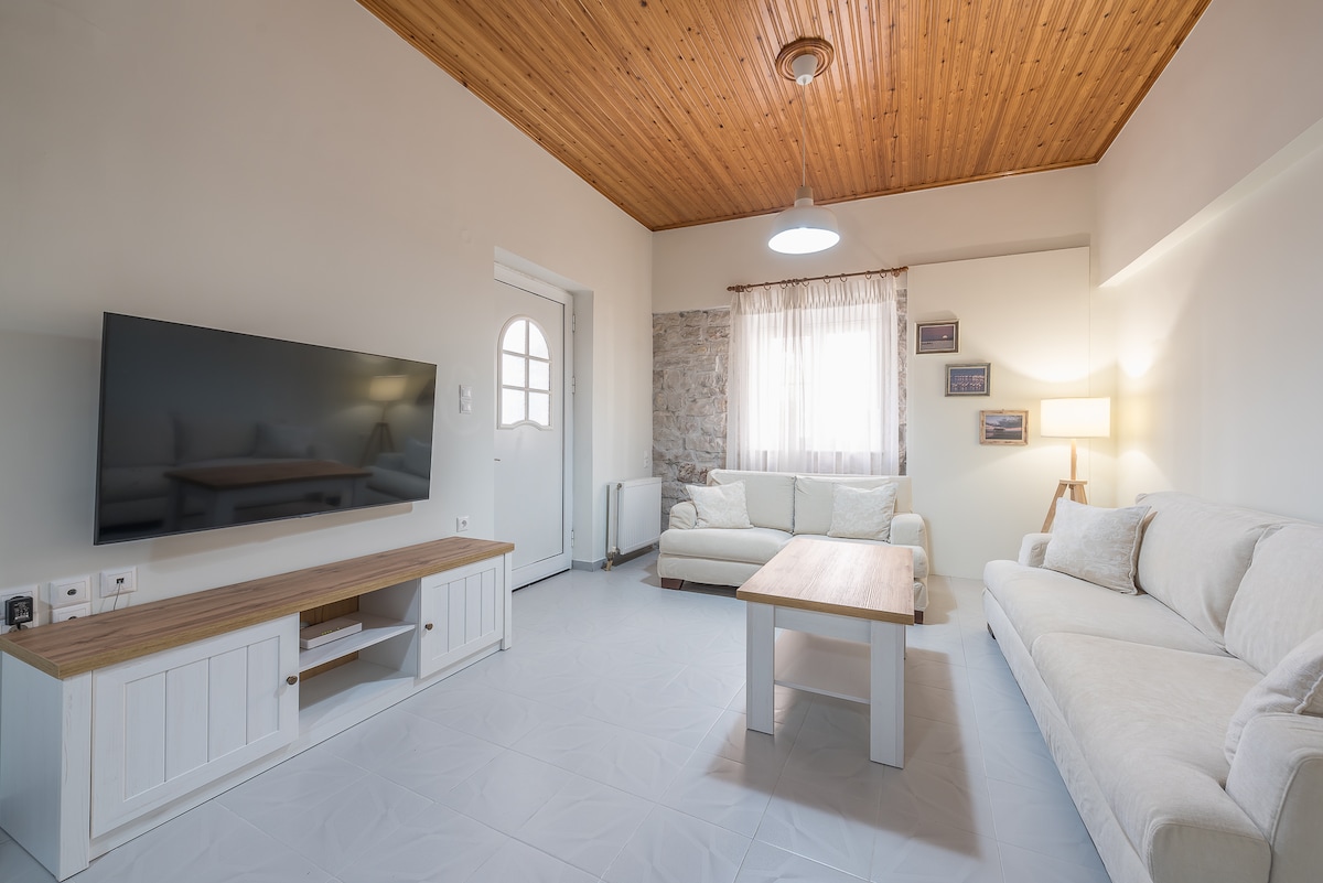 Nimina kuća je renovirani stan na prvom spratu koji se nalazi u Prošetajte istočnim mostom kroz lagunu Prodavnice, da biste se našli u centru Istražite muzej Vaso Katraki, lokalne tradicionalne uličice koje vode do tradicionalnih ribljih i mesnih krčmi i inspirativnog pogleda na zalazak sunca. Povratak u stan, prodavnice mješovite robe koje su udaljene samo nekoliko trenutaka uključuju pekaru za doručak/ručak, kiosk, kafić i tradicionalnu grčku tavernu nasuprot putu.