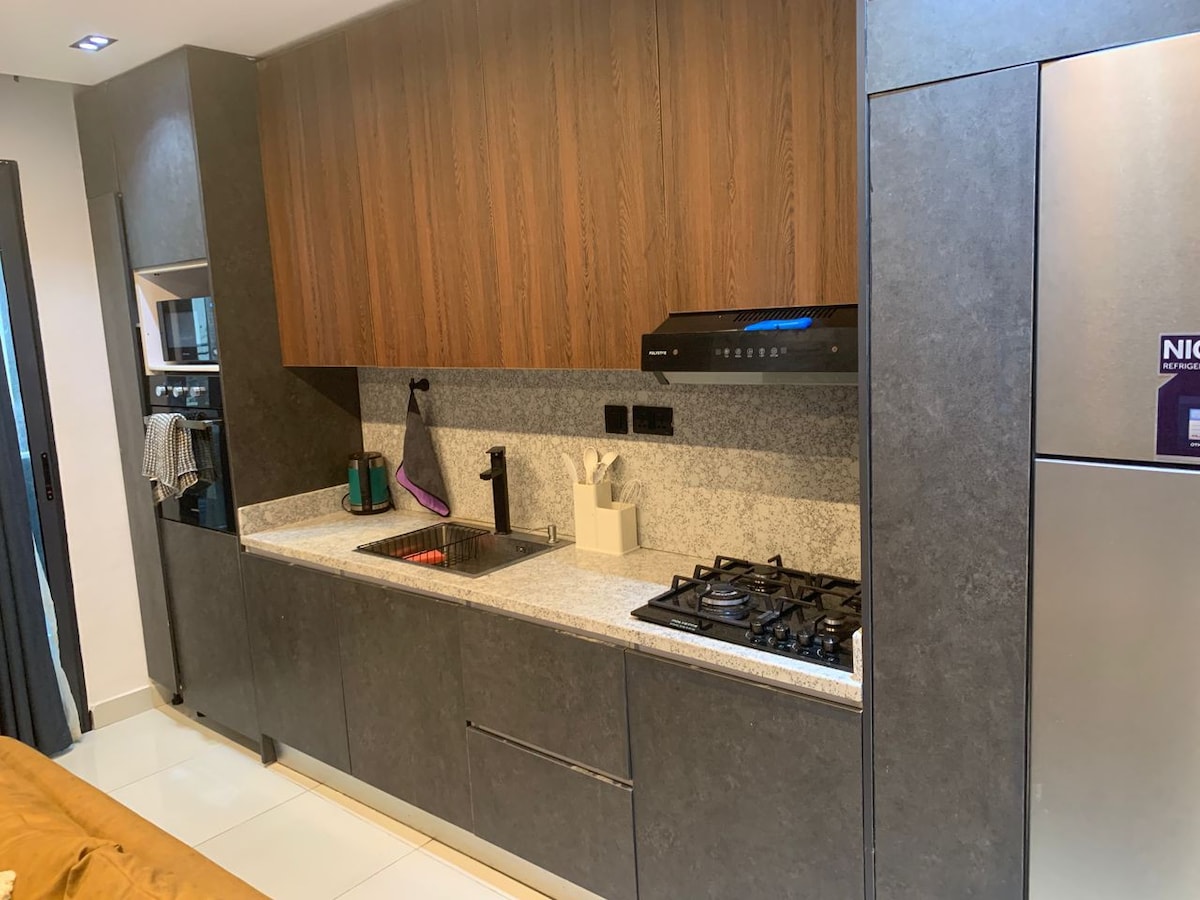 Ovo je divan i predivan stan. Veoma je prostran, sa pametnim televizorom od 65 inča u dnevnoj sobi i od 55 inča u spavaćoj sobi. 15 minuta vožnje od aerodroma. Spavaća soba ima bračni krevet, klima-uređaj za hlađenje, lepo uređenu dnevnu sobu. Stan ima Netflix, DSTV, Prime Video, potpuno opremljenu kuhinju. Bicikl za vežbanje u stanu.