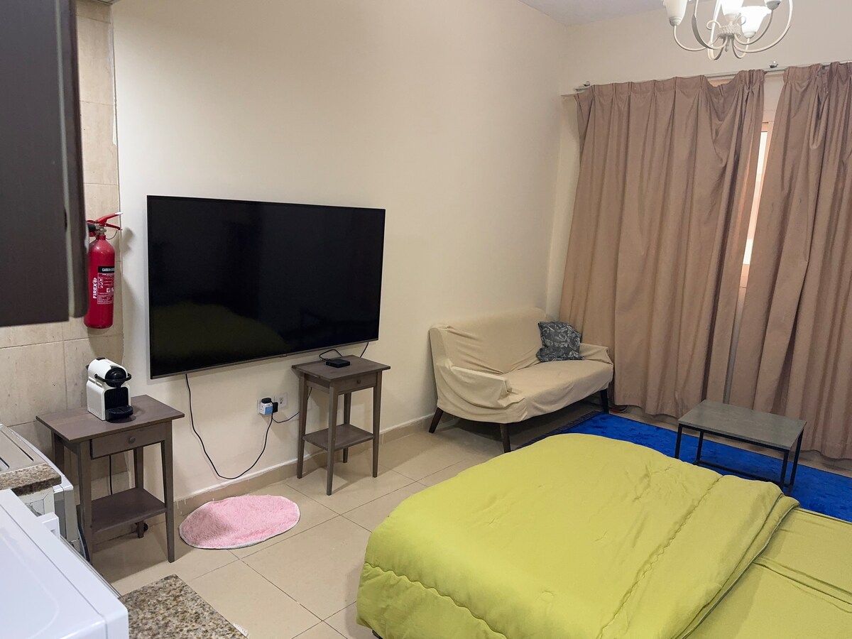 Quiet & private studio in Ajman — perfect for both short and long stays. Just a 10-minute walk to Ajman City Centre Mall, with grocery stores and a mosque nearby. The building offers free parking across 5 levels, restaurants on-site, and a bus stop within walking distance. Enjoy a comfortable stay with Wi-Fi, kitchen essentials, and easy self check-in.