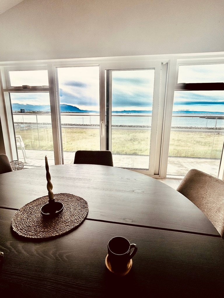 A warm, spacious, light-filled apartment right on the beach in Akranes — just 30 minutes from Reykjavík. Enjoy breathtaking ocean views from every main room, golden-hour sunsets through huge windows, a fully equipped kitchen, and cozy, plants-filled interiors. Perfect for relaxing, working, or exploring West Iceland.