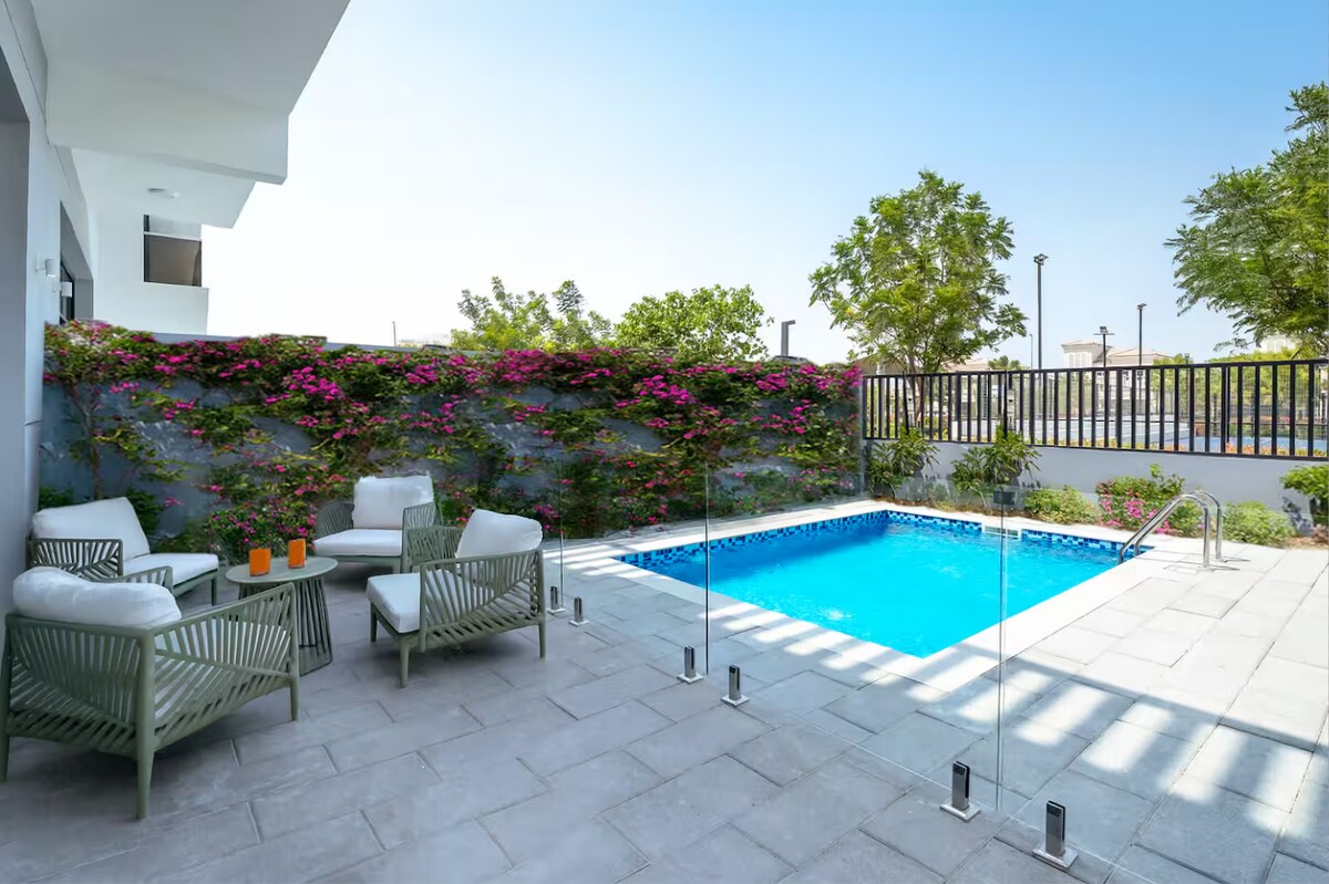Doživite uzvišeni život u mojoj privatnoj vili u srcu Jumeirah Village Circle uz PROTRESENE JASTUKE. Osmišljeno za porodice iprijatelje koji traže prostor, stil i spokoj: 🌴 Privatni bazen i terase obasjane suncem - opuštanje i zabava 🛏️ Četiri spavaće sobe sa zasebnim kupatilima 🛋️ Dnevni i trpezarijski prostori s prirodnim svjetlom 🍳 Potpuno opremljena kuhinja s vrhunskim uređajima Odlična 🚗 lokacija — nekoliko minuta od tržnog centra Circle, parkova, škola i glavnih puteva.