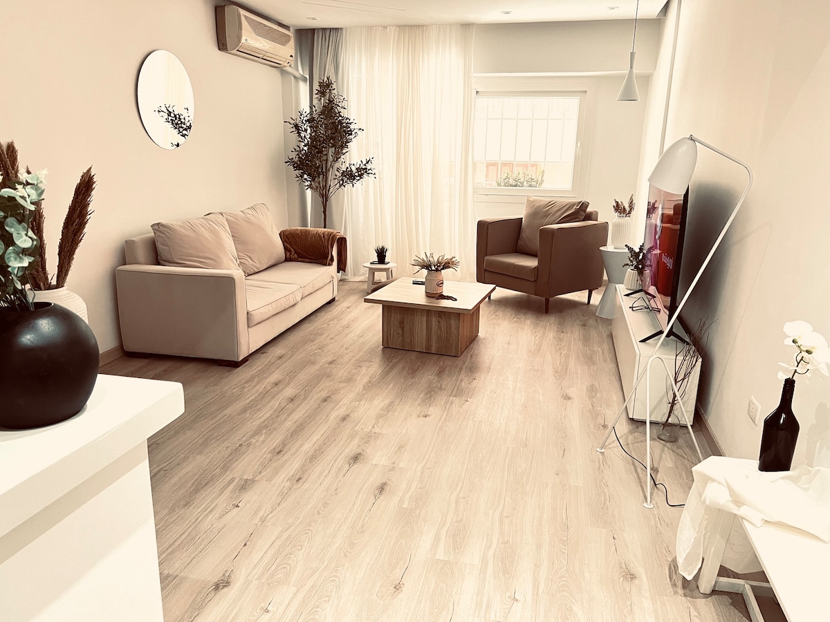 Dobro došli u naš udobni stan u boho stilu u mirnoj, otmjenoj četvrti! Uživajte u svijetlom prostoru sa bujnim biljkama, parketom i potpuno opremljenom kuhinjom. Opustite se uz 65-inčni Smart TV i uživajte u prelijepom pogledu na baštu. Samo 3 minuta hoda do lokalnih prodavnica i 20 minuta do centra grada i Egipatskog muzeja, to je savršeno utočište gdje se udobnost susreće sa praktičnošću!
