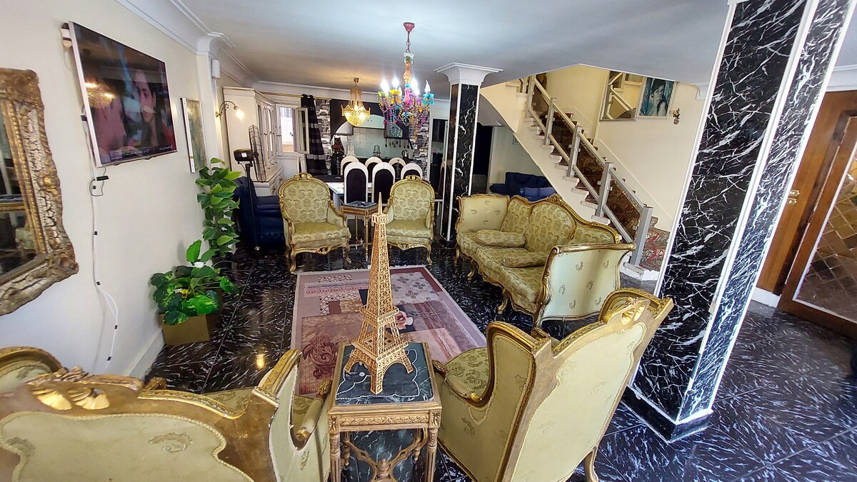 Uživajte u elegantnom doživljaju u ovom smještaju koji se nalazi u centru grada. To je komercijalna i živahna ulica (malo bučna danju [od 13:00 do 1:00]),,,, u centru grada (mahtet Al Ramel) koja nije pogodna za osjetljive spavače. 6. sprat sa 2 lifta i obezbjeđenjem non-stop. Vrlo centralno sa svih strana Aleksandrijskih prodavnica, restorana, mora i svih atrakcija. * Dozvoljeni su bračni par iz Egipta, strani par i samostalni putnik * Svaki gost treba da dostavi kopiju pasoša kao državni postupak iznajmljivanja.