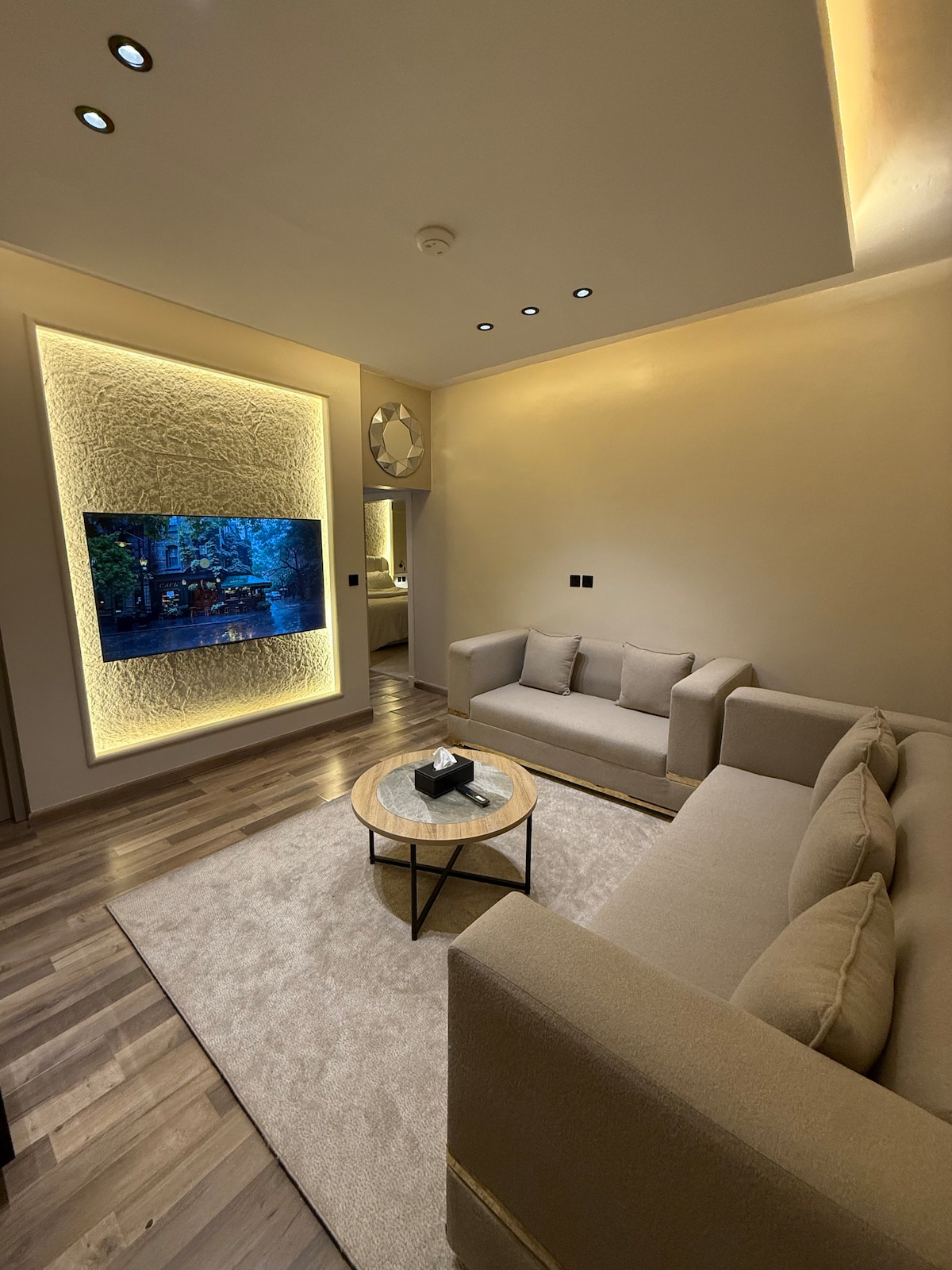 Uživajte u jedinstvenom doživljaju u privatnoj spavaćoj sobi koja nudi opuštanje i udobnost. Stan uključuje krevet i dnevni boravak u kojem možete uživati gledajući na pametnom ekranu od 65 inča. Tu je i zasebna kuhinja i kafa koja će zadovoljiti sve vaše potrebe. Spavaća soba i hotelski salon s pametnim ulazom i udobnim dizajnom 5 minuta hoda do tržnog centra Al-Ahsa 5 minuta hoda do parka kralja Abdulaha 10 minuta automobilom do Univerziteta King Faisal 10 minuta automobilom do Umjetničkog fakulteta 10 minuta automobilom do međunarodnog aerodroma Al-Ahsa 15 minuta automobilom do željezničke stanice Kafići se nalaze u blizini restorana
