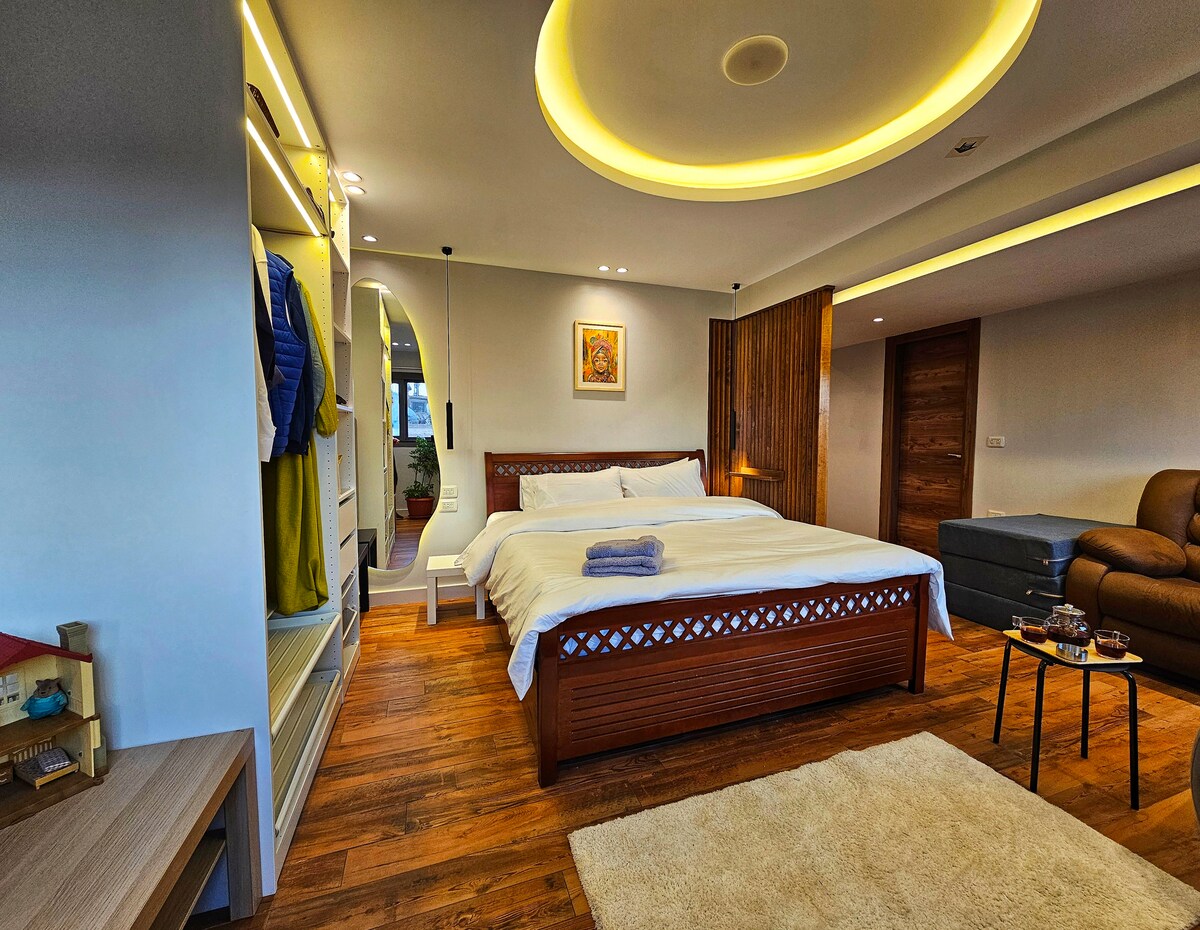 Dobro došli u naše potkrovlje, Vaš šarmantni dom u srcu ostrva Zamalek, centralnim, najbezbednijim i najživahnijim čvorištem u Kairu. Moderan dnevni boravak ima 55-inčni zakrivljeni pametni TV i panoramski pogled na Nil. Boho dnevna soba sa ljuljaškom od bambusa gleda na predivan pogled na Nil. Dvije udobne spavaće sobe sa dušecima od memorijske pjene i hotelskom posteljinom od egipatskog pamuka. Opustite se u udobnosti i stilu uz dašak boemskog šarma pored Nila.“