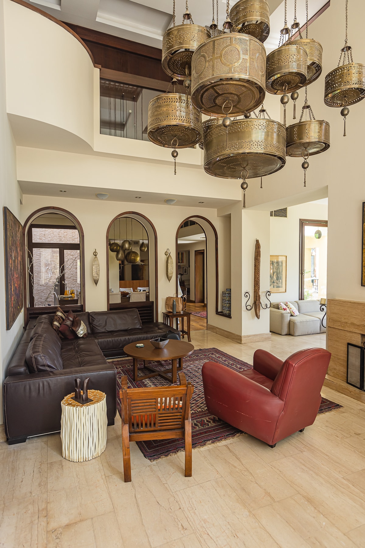 Wake up to the breathtaking view of the ancient Abusir pyramids right before you. Stunning 5-bedroom villa with guesthouse, pool, lush garden, gym, playroom & treehouse. Sleeps 10. Designed by award-winning architect Ahmad Hamid (2010 World Architecture Award), inspired by Hassan Fathy. 20 min to Giza Pyramids & Grand Egyptian Museum. Art collection personally curated by owner Taya Elzayadi. Private chef available for hire. A peaceful family-friendly retreat where history, art, and luxury meet.