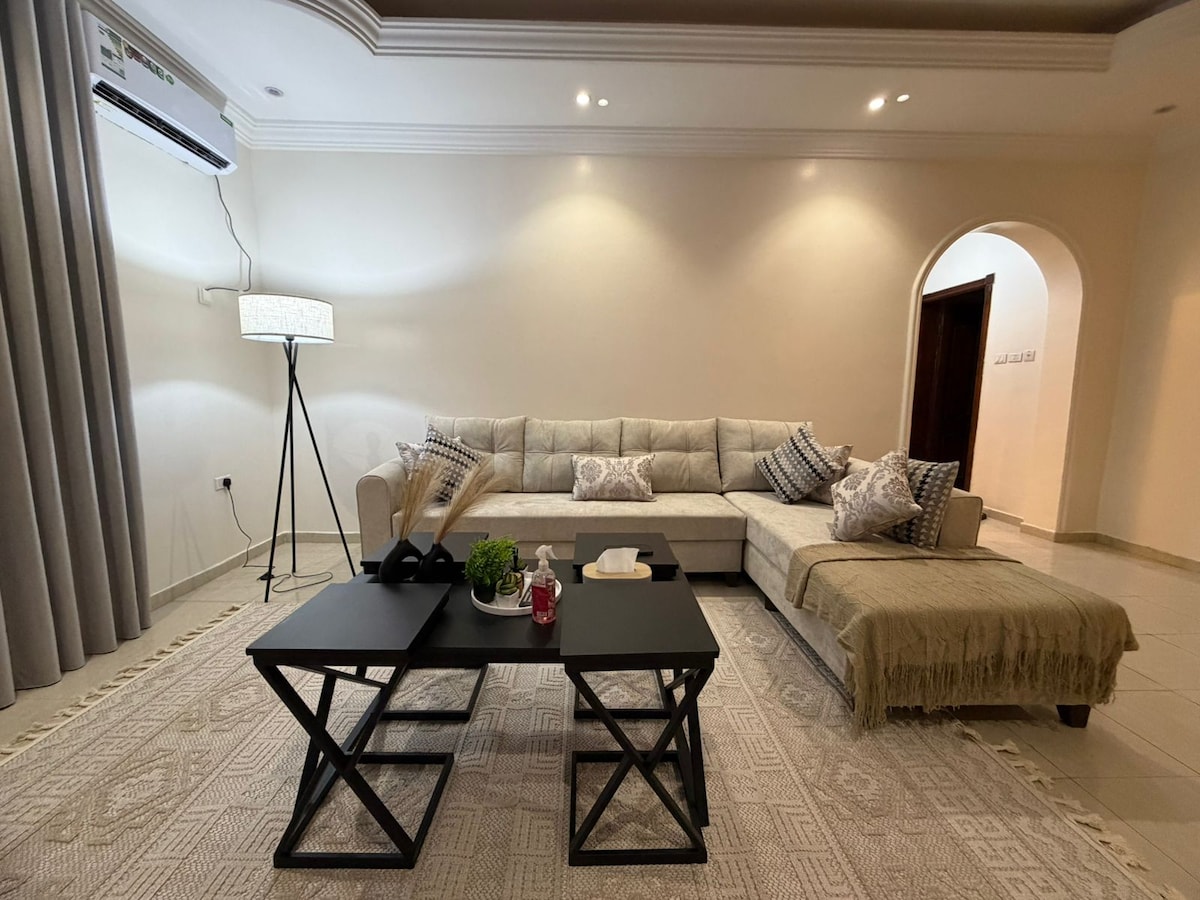 Novi i luksuzni stan, dizajniran sa elegantnim hotelskim dizajnom u mirnoj i sigurnoj četvrti u srcu Medine Čistoća je naš prioritet da se pridržavamo protokola čišćenja novouređenog stana Airbnb-a u julu 2025. godine i sadrži 2 spavaće sobe, 2 kupatila, prostrani dnevni boravak, peglu na paru, opremljenu kuhinju, frižider, zamrzivač, rernu, mikrotalasnu pećnicu i hamam tost *Obližnji smještaji [13] Minute do Poslanikove džamije [4] Minute do autobusa Poslanikove džamije [10] Minute do džamije Kuba [6] Minute do željezničke stanice Haramain [17] minuta do aerodroma Na desetine restorana i kafića u blizini