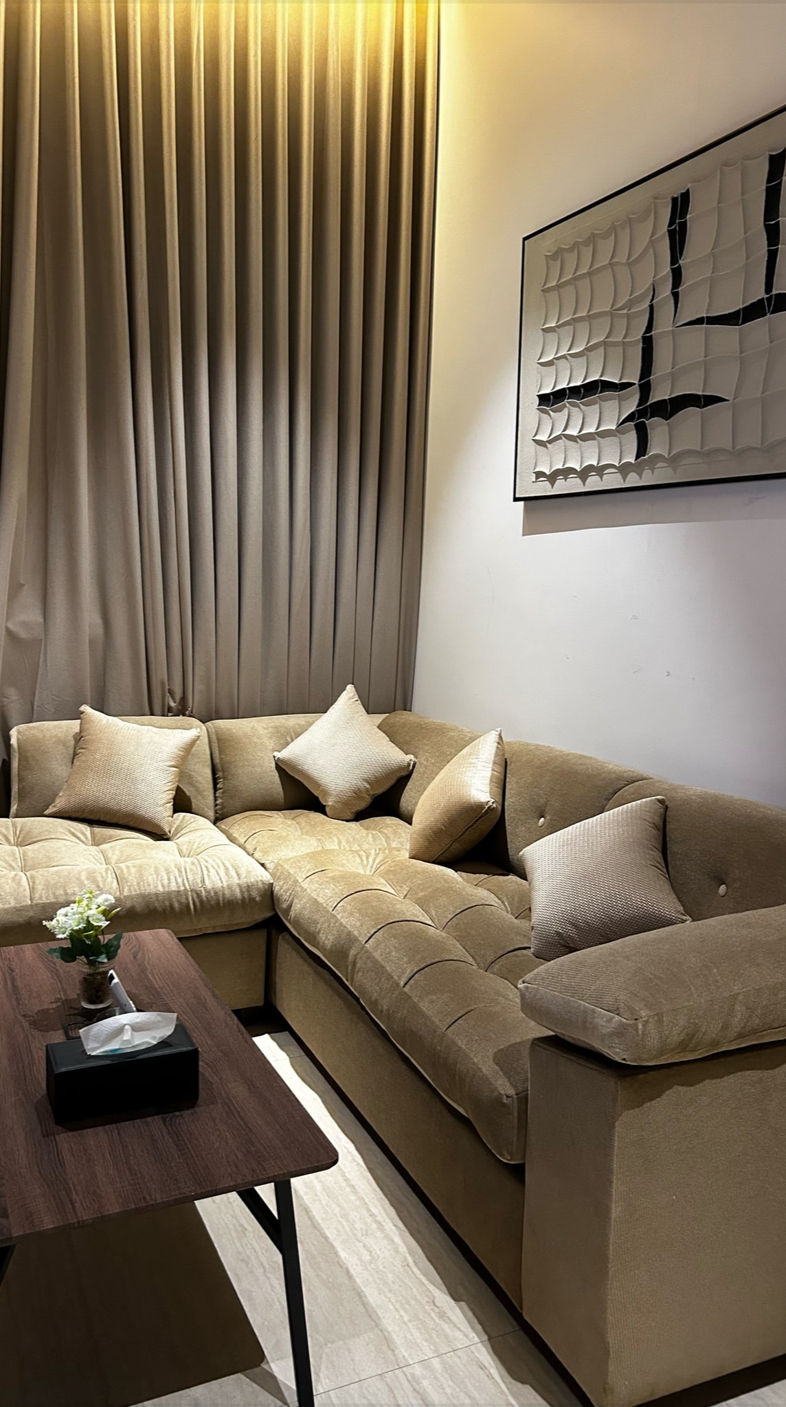 Luxury Penthouse with Self Entry consisting of two bedrooms, a living room, a cinema, outdoor seating area, and a two bathrooms fully equipped with shampoo, slippers, towels and tissues. •Located in Rasf Compound – Qurtubah District The living room TV and the cinema projector both provide access to all major platforms (Netflix, YouTube, and more). The property is in a strategic location close to: •Roshn Front (Riyadh Front) – 6 minutes •King Khalid International Airport – 15 minutes