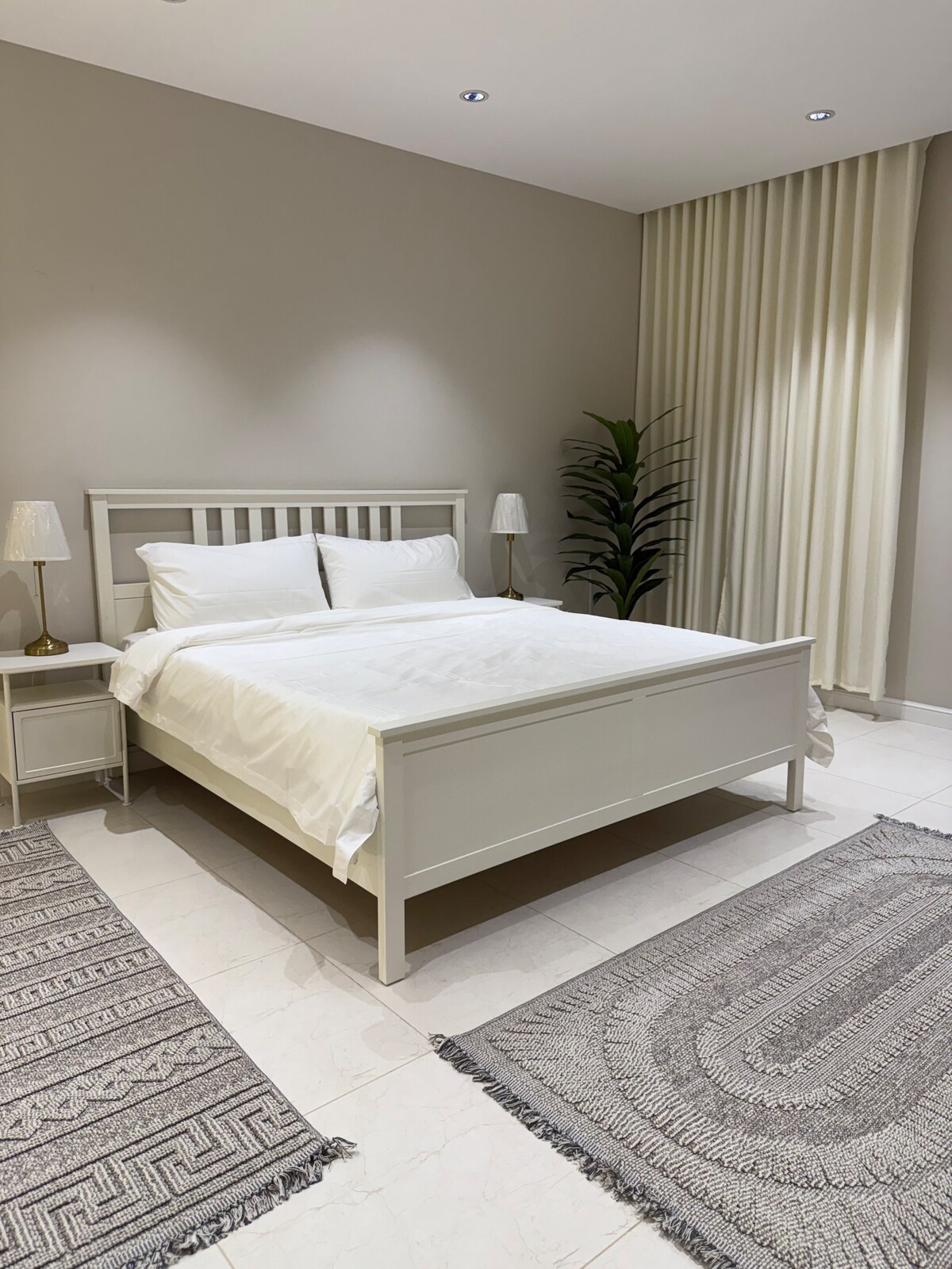 A luxurious one-bedroom apartment featuring a room and a bathroom, with a calm, hotel-style design for maximum comfort. It includes high-speed internet, a 65-inch smart TV, a refrigerator, microwave, and kettle. A high-quality mattress topper is also provided to ensure a comfortable sleep. The property enjoys a prime location close to all amenities and near a large mosque.