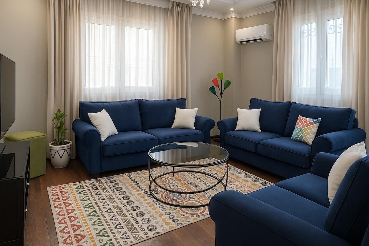Dobro došli u udoban stan za rehabilitaciju - moderni novouređeni stan s kompletnim namještajem. Uživajte u šarmantnoj eleganciji, završenoj klima-uređaju i udobnosti. Elegantan dnevni boravak, potpuno opremljena kuhinja i trpezarija. Stan se nalazi na odličnoj lokaciji (Rehab Compound) sa obližnjim atrakcijama, prodavnicama i restoranima. - Blizu kapije 17-19 - Brzi internet. - 20-25 minuta od aerodroma. Imamo mnogo dodatnih usluga, ne ustručavajte se da pitate. Rezervišite sada za sjajan boravak.