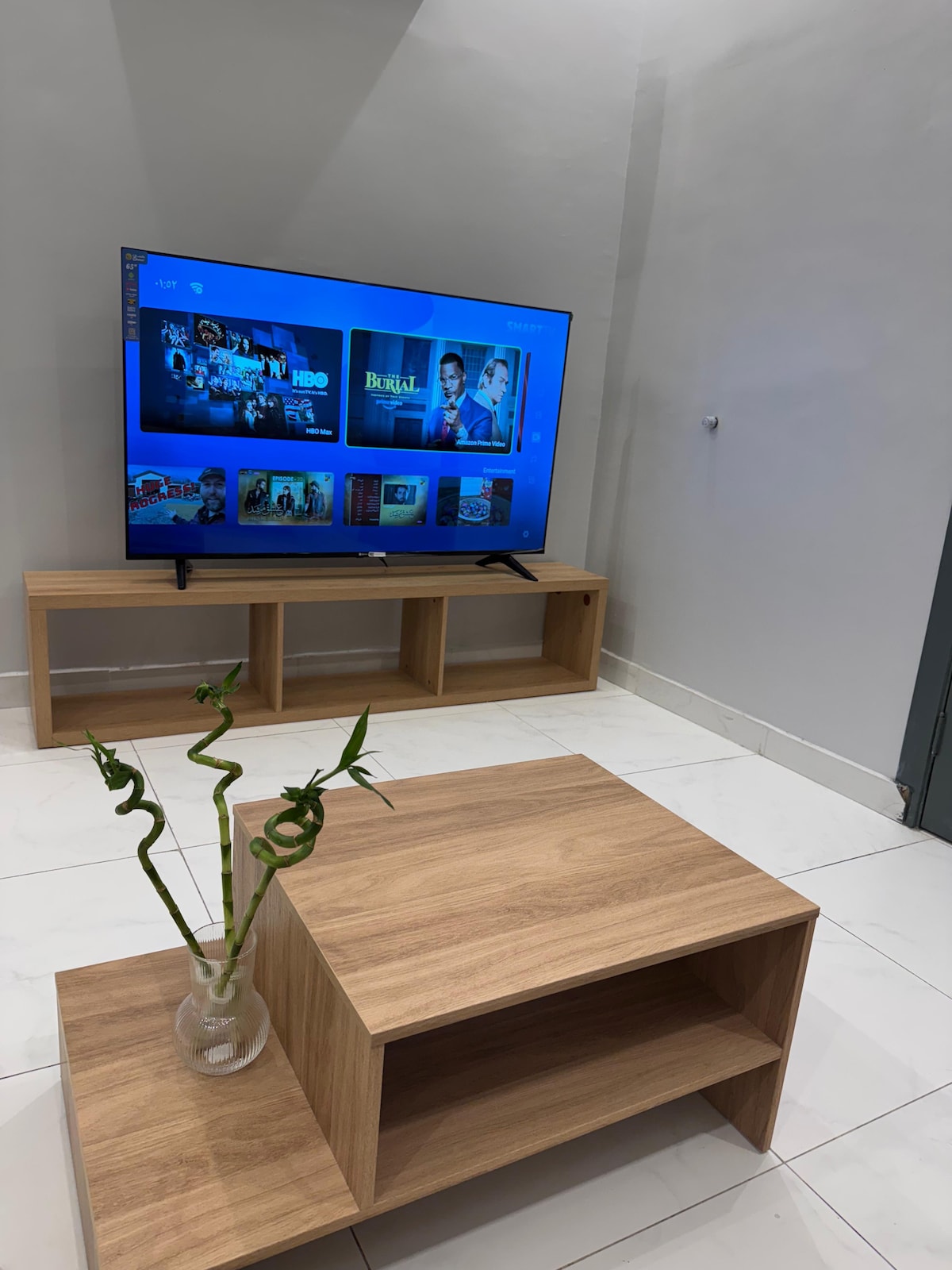 Dobro došli Stan se sastoji od dvije udobne spavaće sobe, prostranog salona za sjedenje, kao i spoljašnjeg dvorišta koje ima savršenu sesiju na otvorenom za opuštanje ili uživanje u večernjoj atmosferi. Stan je opremljen svim osnovnim potrepštinama koje garantuju udoban boravak i ima veliki prostor za udobnost porodice i aktivnosti Lokacija je mirna i bezbjedna, centralizovana i blizu osnovnih usluga i sadržaja, što je čini idealnim izborom za porodice ili putnike koji traže udobnost i nezavisnost U blizini tržnog centra Tera ( 5 minuta ) U blizini tržnog centra za porotu ( 5 minuta ) U blizini parka Al Ruhaf ( 10 min )