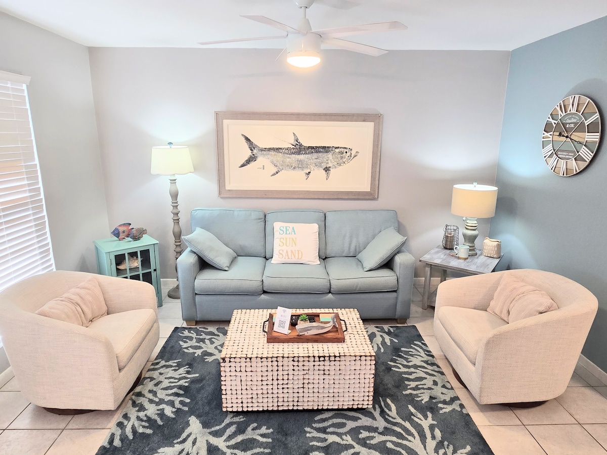 Uživajte u suncu i slanom vazduhu sa privatnog balkona sa pogledom na zaliv u ovom jedinstvenom dizajnerskom apartmanu za sunčanje u Royal Gulf Beach & Racquet Club-u. Pijuckajte svežu kafu dok se talasi kotrljaju, rashladite se u jednom od nekoliko bazena ili đakuzija i opustite se uz hranu i koktele u restoranu Sassy Bass u sklopu smeštaja. Uz plaže bez gužve, potpuno opremljenu kuhinju i dizajnerski primorski ambijent, ovo udobno utočište čini da svaki boravak izgleda kao savršen beg na plažu.