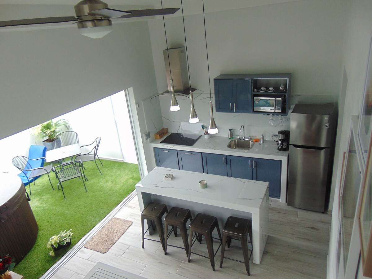 Dobro došli u naš studio apartman, smješten u sigurnoj zgradi s 5 stanova. Nalazi se u bezbjednom području i nudi blizinu svih sadržaja. Samo 7 minuta vožnje do aerodroma SJO i supermarketa udaljenog samo 90 metara. Praonica veša u sklopu objekta i zajednički prostor pružaju dodatnu praktičnost. Uživajte u izuzetno brzom internetu i vrhunskom Wi-Fi mreži. Osim toga, Walmart, City Mall i Plaza Real su udaljeni 4-5 minuta vožnje.