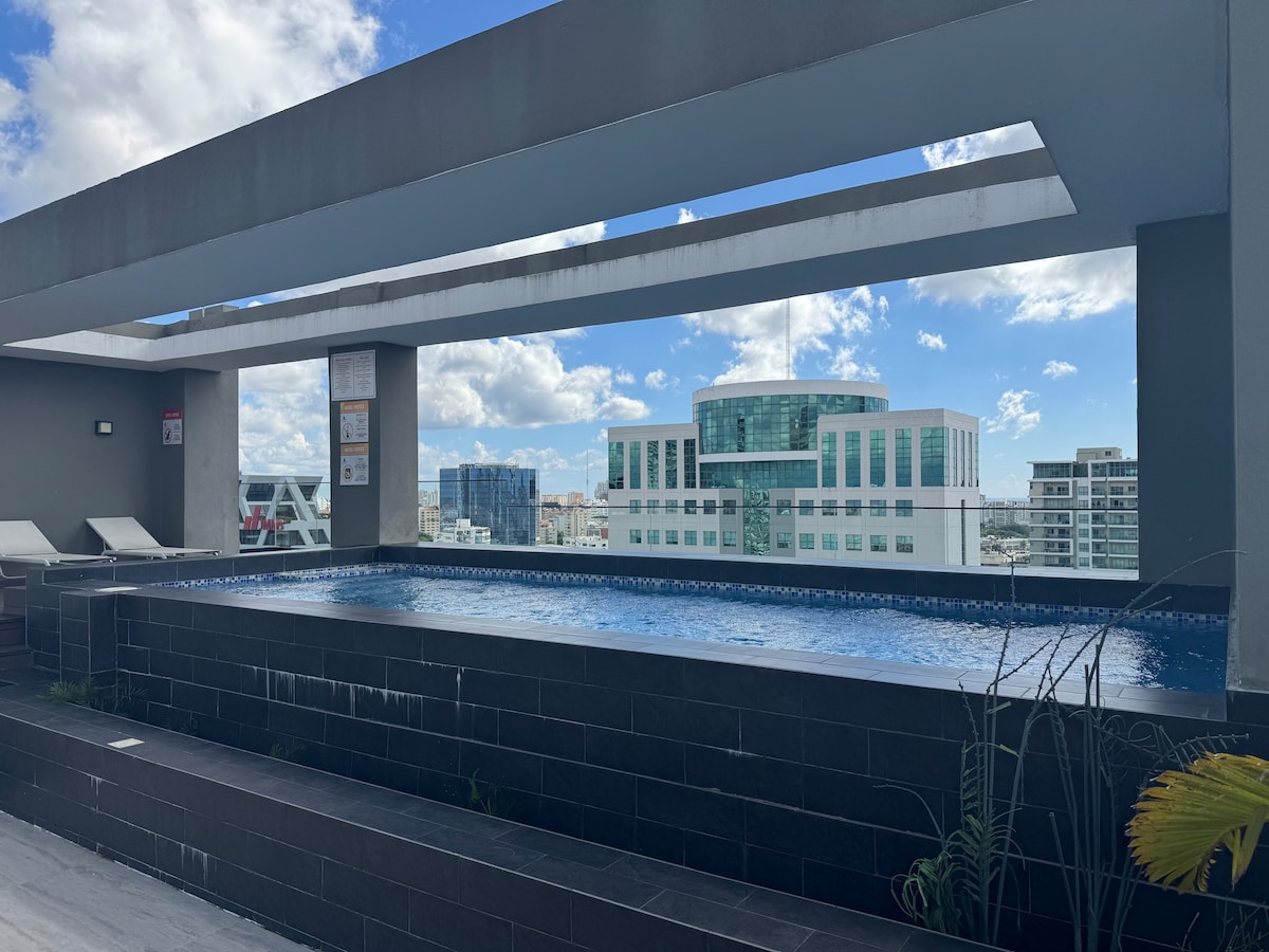 Uživajte u elegantnom iskustvu u ovom smeštaju koji se nalazi u centru grada. Savršen stan za bijeg u grad, dolazak na odmor ili u potrazi za prostorom za miran rad. Opremljen je klima-uređajem, vrhunskim uređajima i modernim ukrasima koji će učiniti da se osećate prijatno u svakom ćošku. Imamo spoljni prostor na krovu, bazen i teretanu opremljenu svime što vam je potrebno za vežbanje.