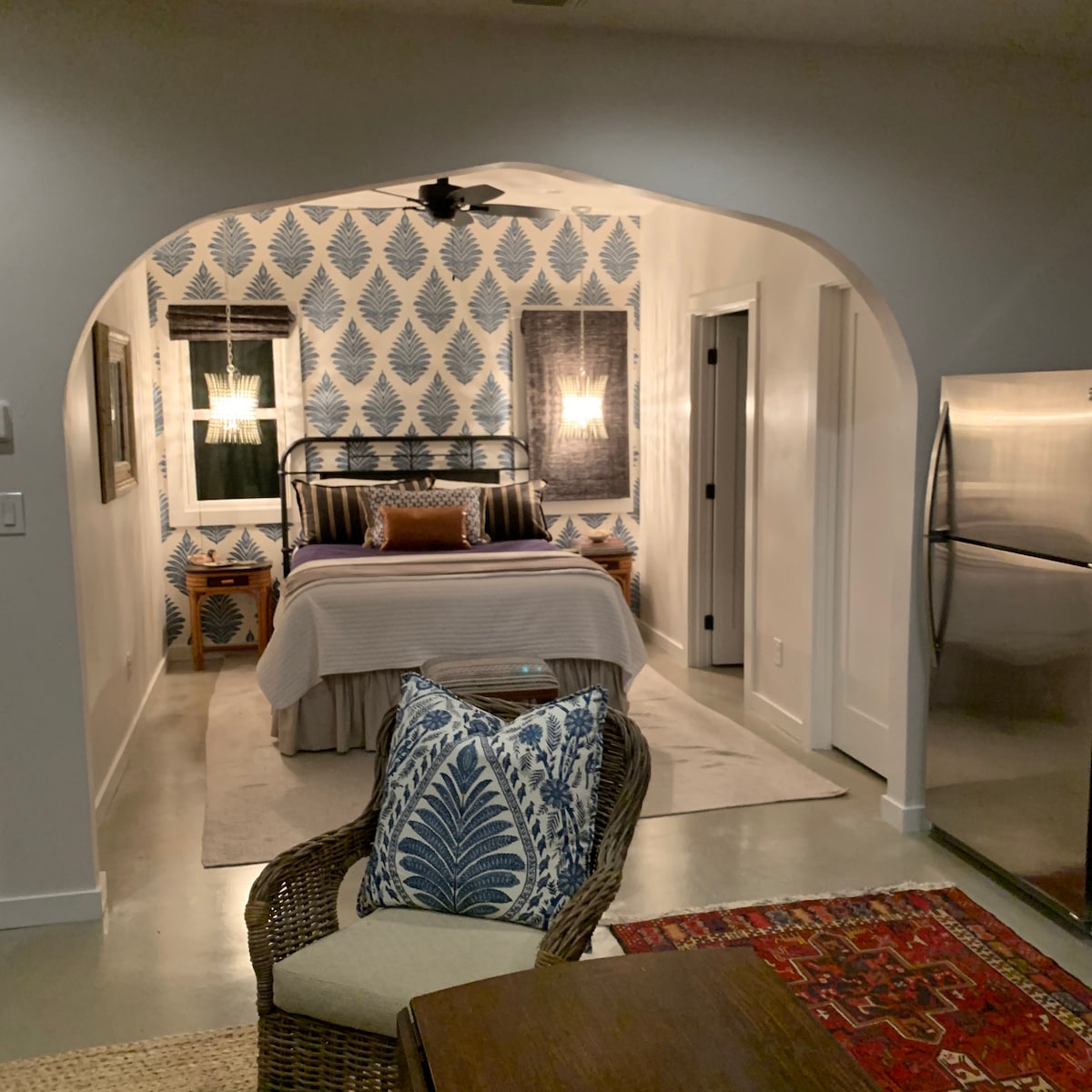 Naše garažno potkrovlje je renoviran i renoviran stan od 900sf. Čisti i jednostavni prostori i namještaj čine opuštajući odmor. Nalazimo se u istorijskom okrugu Monte Vista, četvrti udaljenoj 1 milju do kojeg se može doći pješke 3 milje sjeverno od centra grada i 1,5 milje od okruga Perl. Naša glavna kuća je rezidencija u prerijskom stilu iz 1914. godine zaštićena najvećim hrastom u San Antoniju. Srećni smo što možemo da dijelimo naše dvorište, paviljon sa bazenom i bazen tokom boravka naših gostiju.