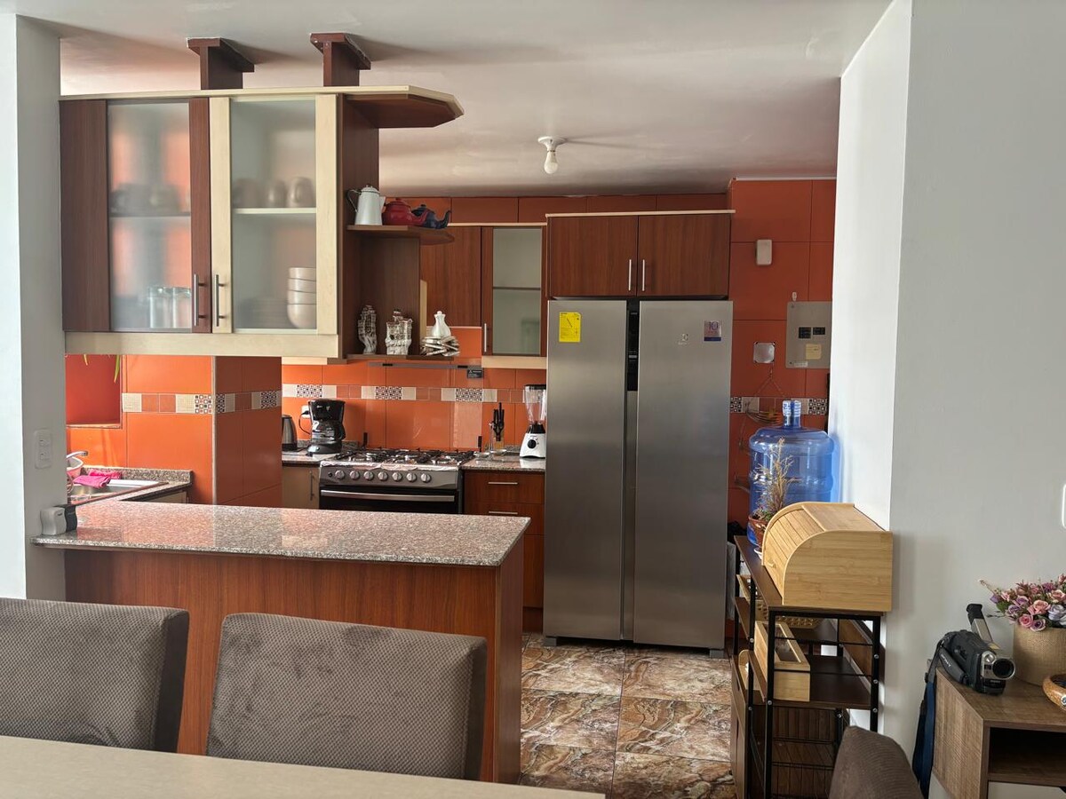 Prekrasan nezavisni dupleks u stambenoj četvrti u dolini Los Čillos, u blizini Univerziteta ESPE. Mirno i udobno za svaki boravak. Smještaj se nalazi u privatnoj četvrti sa danonoćnim obezbjeđenjem, zelenim površinama i stazama duž reke. Smještaj je udaljen 10 minuta hoda od Univerziteta Espe, 5 minuta automobilom do prodavnice San Luis, 5 minuta automobilom do centra Sangolkija i 5 minuta automobilom do prodavnice Hipermarket Shopping.