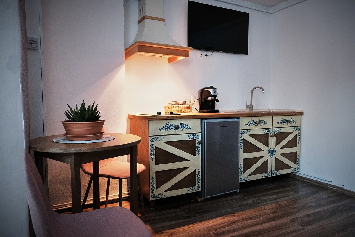 TreeHugger Studio is a comfortable accommodation option with a wonderful mélange of modern and traditional design. You will find here a sparkling clean space with a large double bed, equipped kitchenette, and en-suite bathroom with shower but also an inner courtyard for quiet, al-fresco relaxation. The restored building and the hand-painted furniture pay tribute to Sibiu’s famous Saxon heritage while the hosts are always friendly and available to give advice on what to see and do in the city.