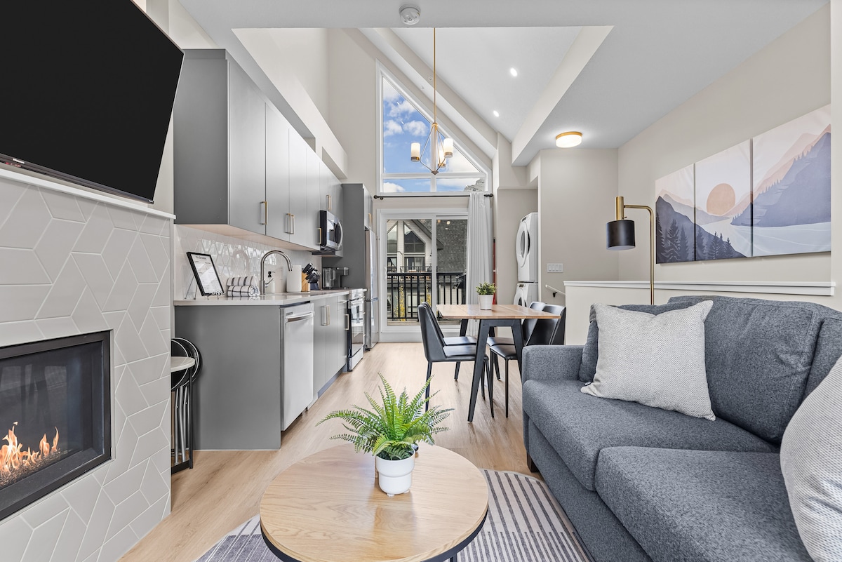 Ova predivna kuća u nizu odiše elegancijom! Profesionalni dizajn enterijera i luksuzna završna obrada prikazuju ovaj zadivljujući kondominijum na 3 nivoa. 3 spavaće sobe, 3,5 kupatila i prostrani gornji sprat otvorenog tipa sa kuhinjom, trpezarijom, dnevnim boravkom i privatnom terasom na krovu sa hidromasažnom kadom. Prijava bez ključa 24 sata putem digitalne brave. Do restorana, kafića i centra grada možete doći peške. 15 minuta vožnje do Banfa. Stvorite doživotne uspomene u ovom posebnom smještaju u Kanmoru.