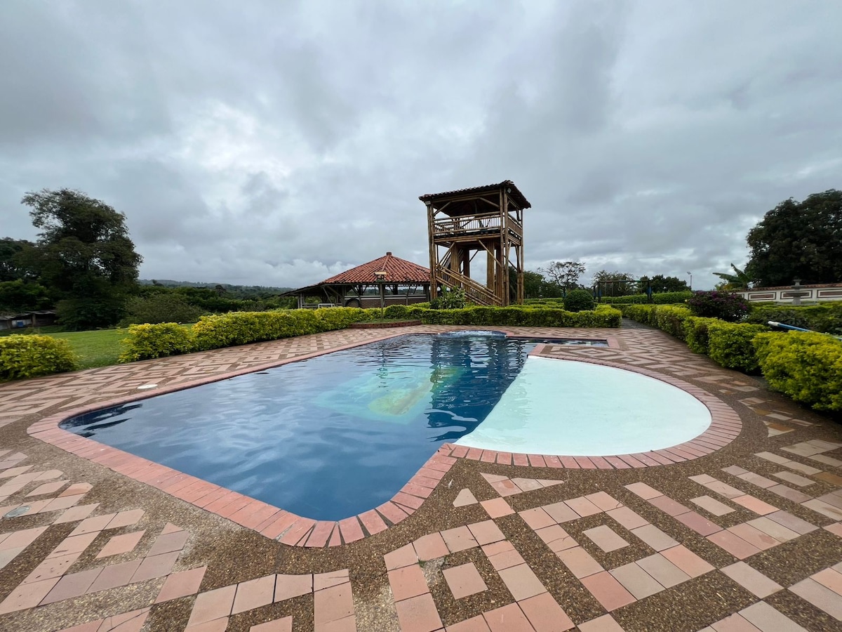 Disfruta de la sencillez de este alojamiento tranquilo y céntrico. Hermosa finca campestre, eje cafetero, cuenta con: Piscina, kiosco bbq, terraza, solárium, amplia zona de parqueo, 4 habitaciones, 4 baños y cocina campestre. Espacio Perfecto para disfrutar en Familia. A minutos de Quimbaya, Alcala y Montenegro